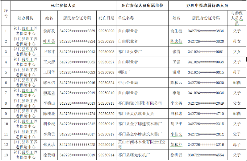 关于申领企业职工基本养老保险遗属待遇的公示(2025年9月)