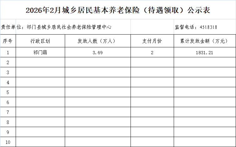 2026年2月城乡居民基本养老保险(待遇领取)公示表