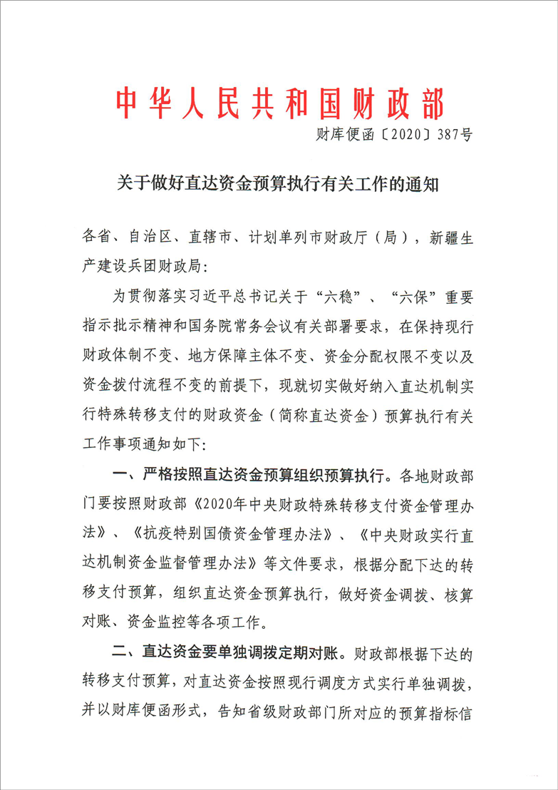 【财政资金直达基层】财政部关于做好直达资金预算执行有关工作的通知