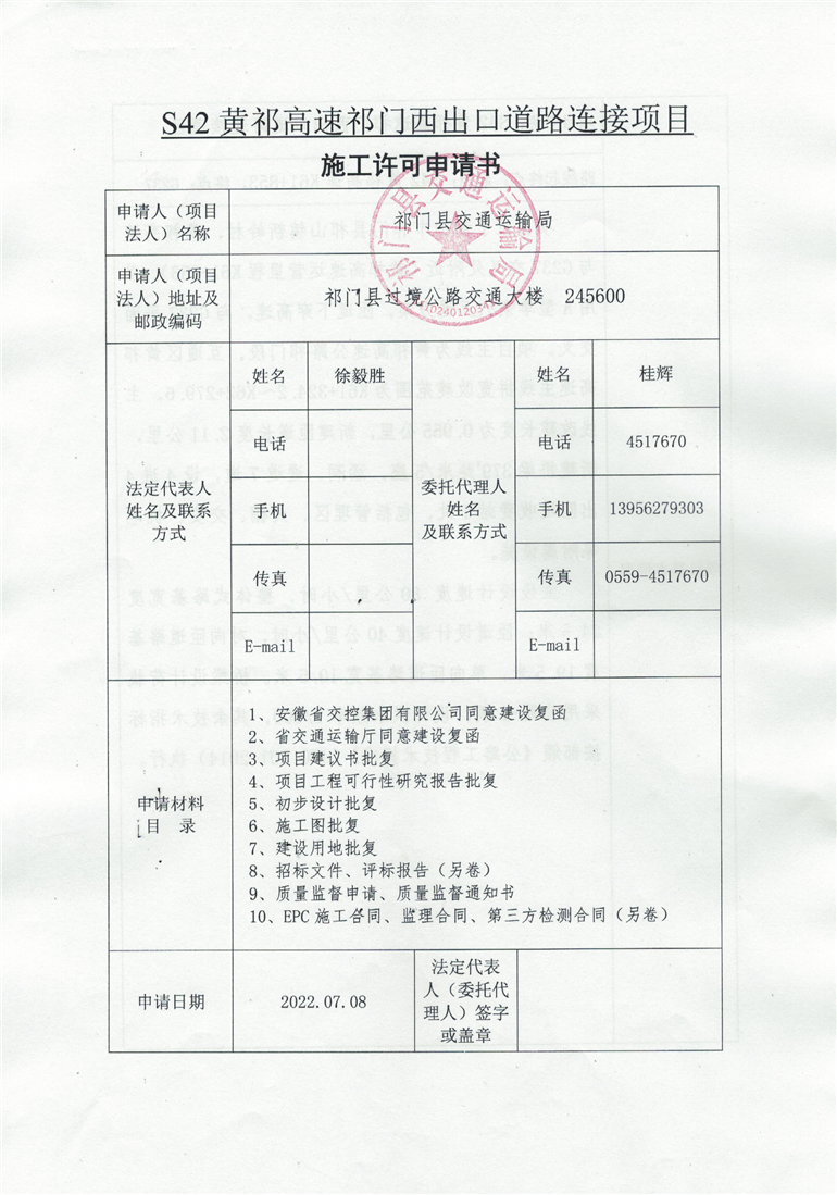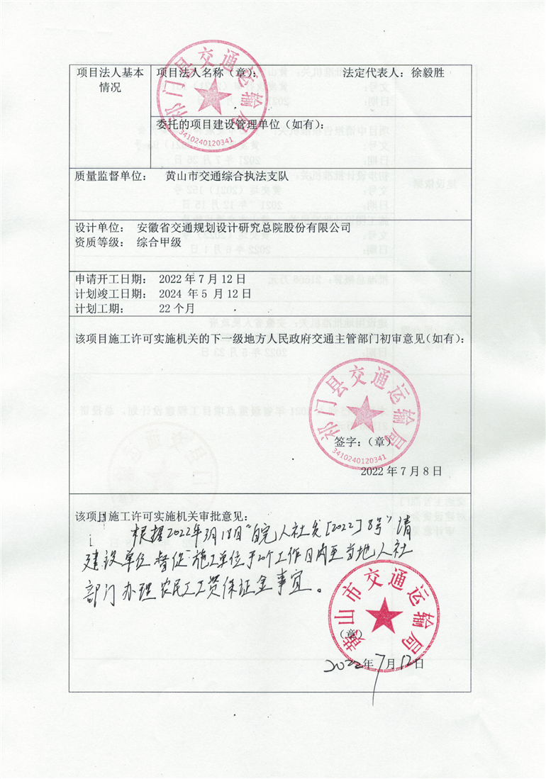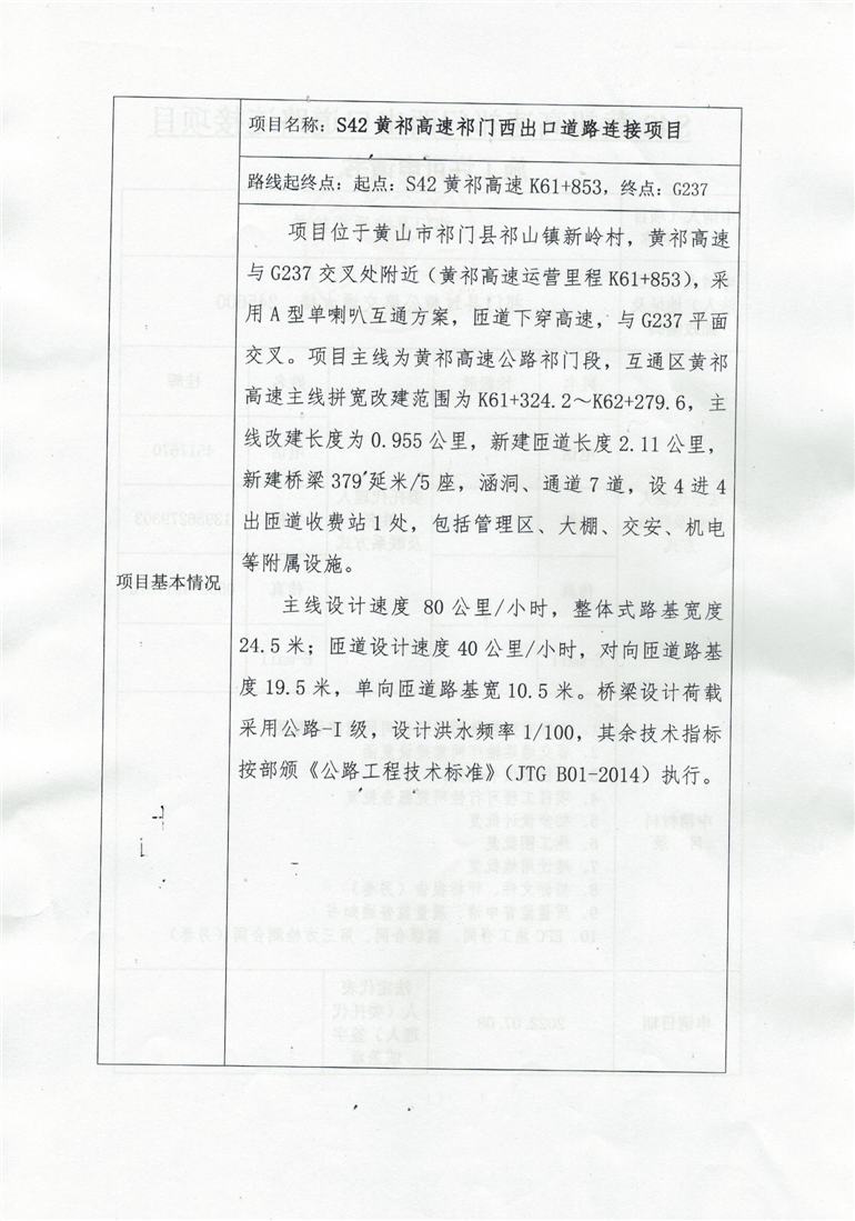 【施工许可】S42黄祁高速祁门西出口道路连接项目