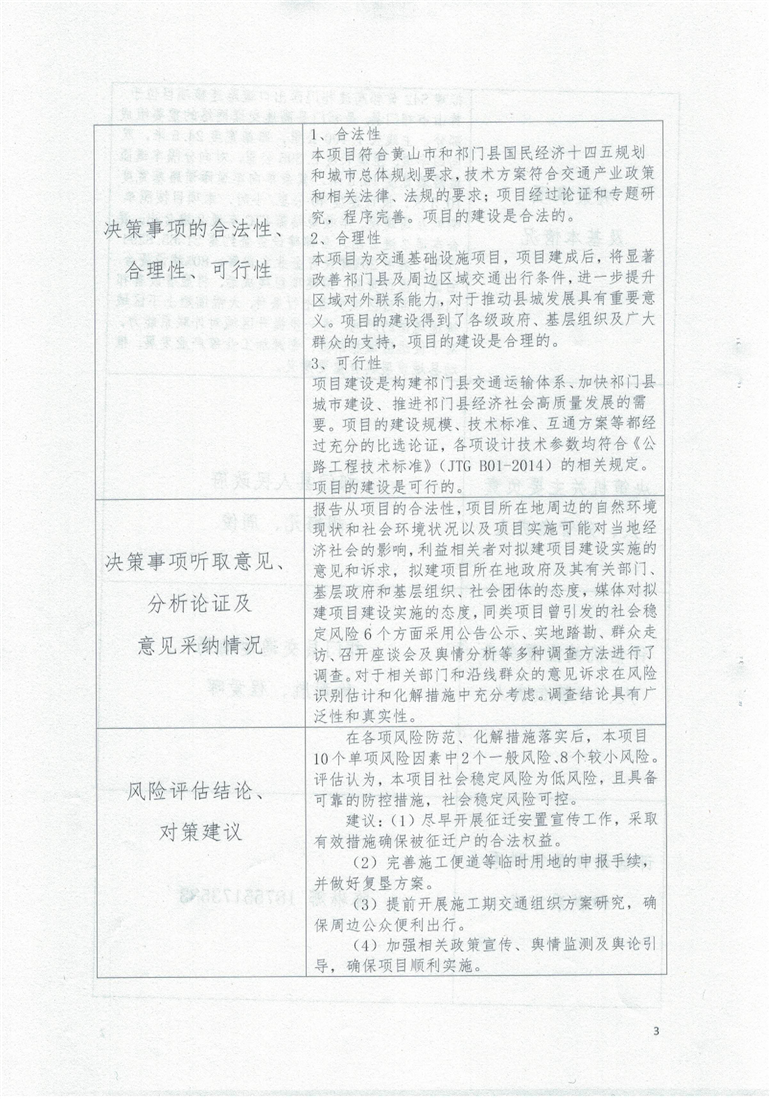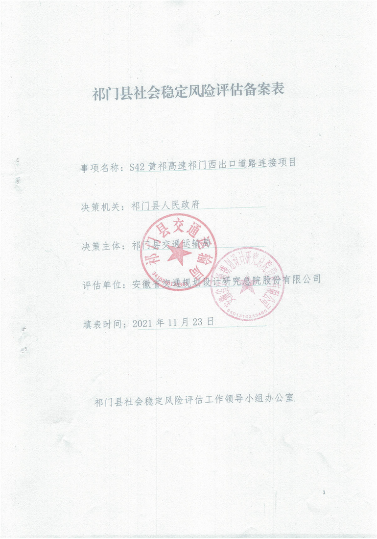 【社会稳定风险评估备案表】S42黄祁高速祁门西出口道路连接项目