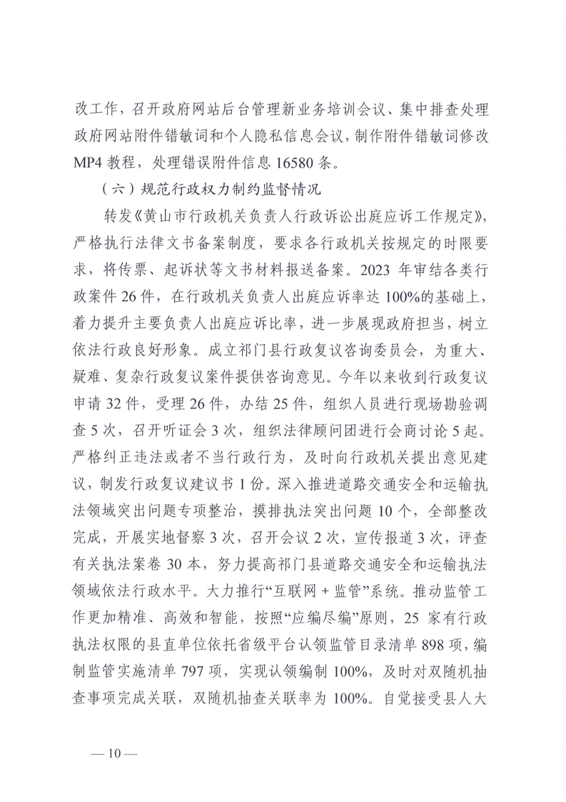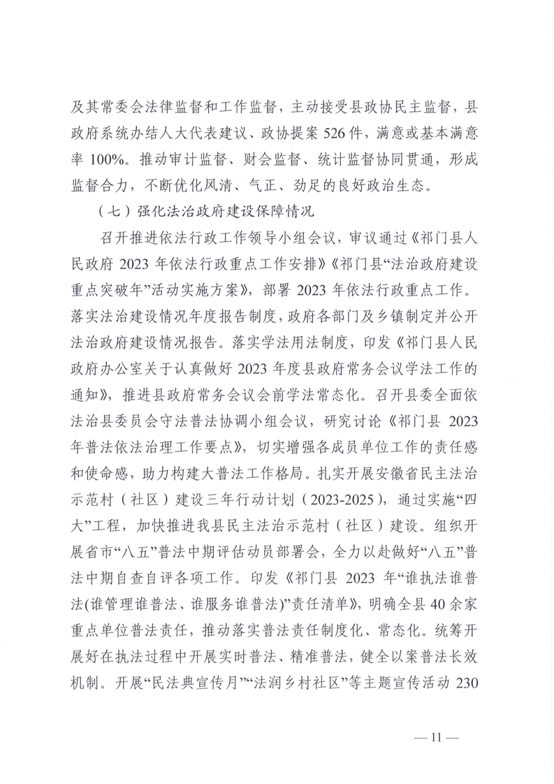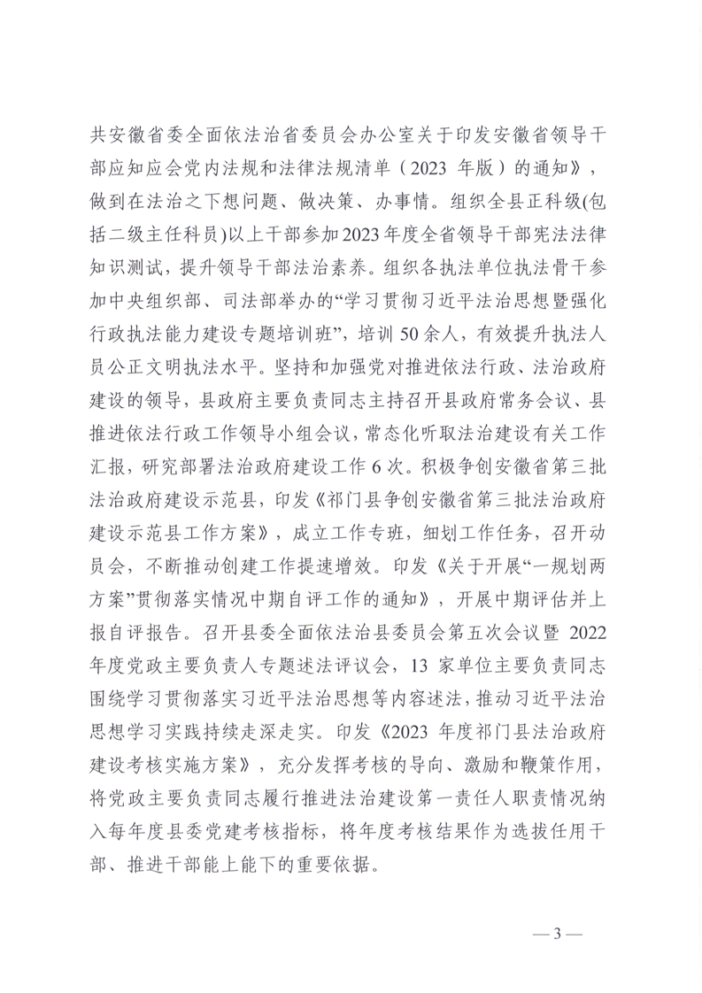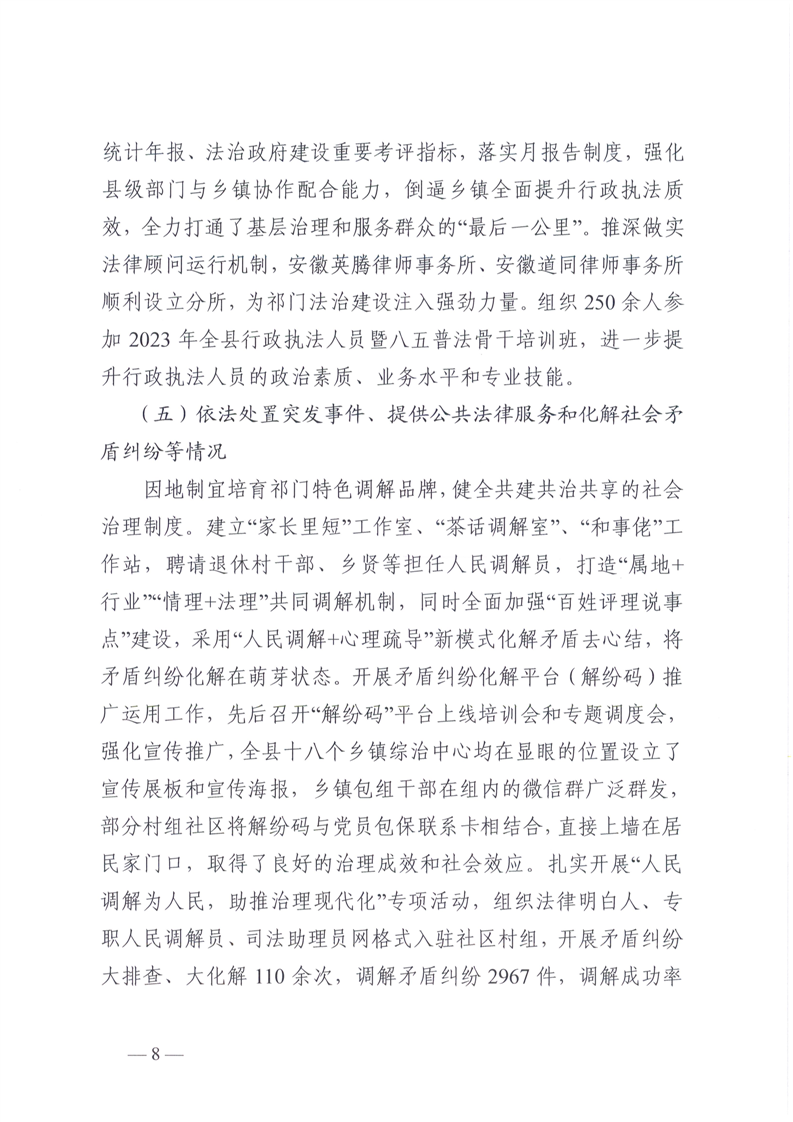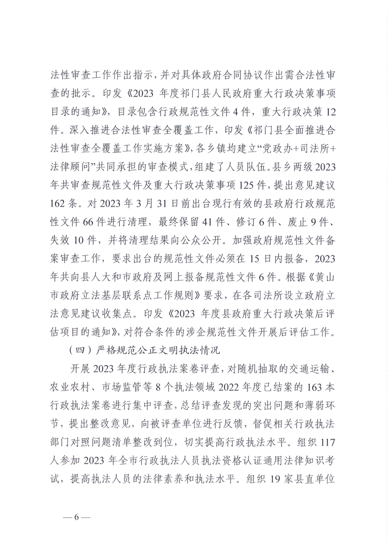 祁门县2023年度法治政府建设工作报告
