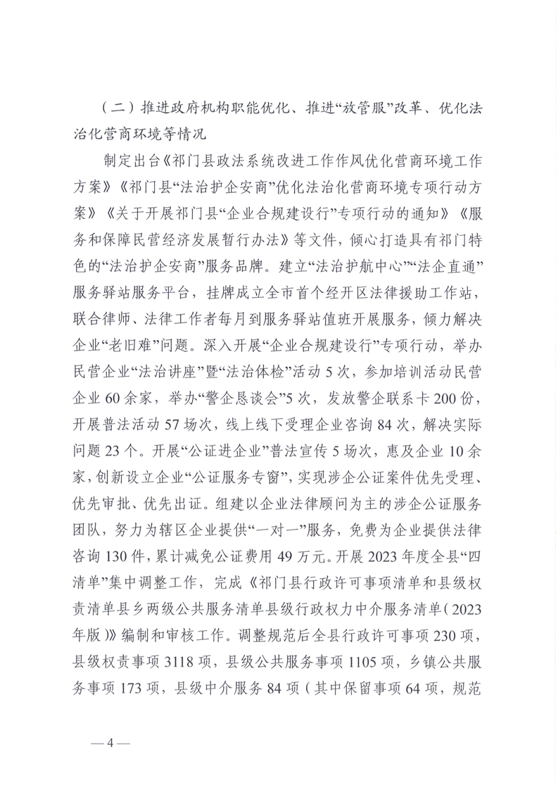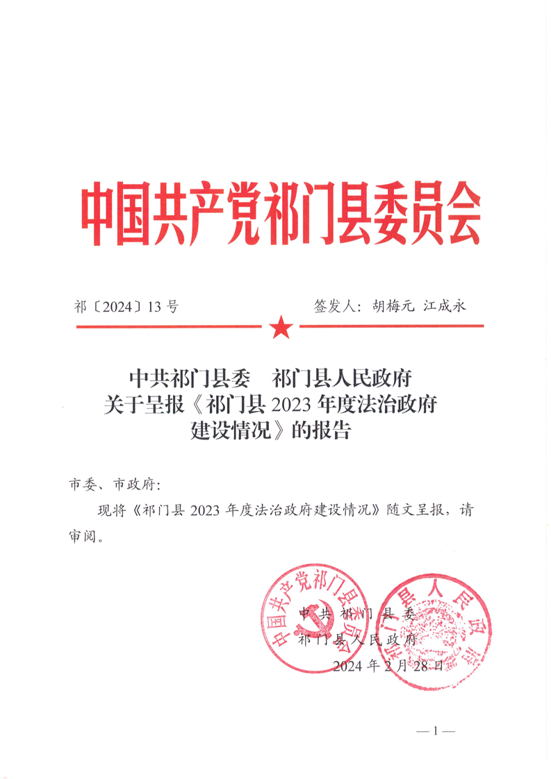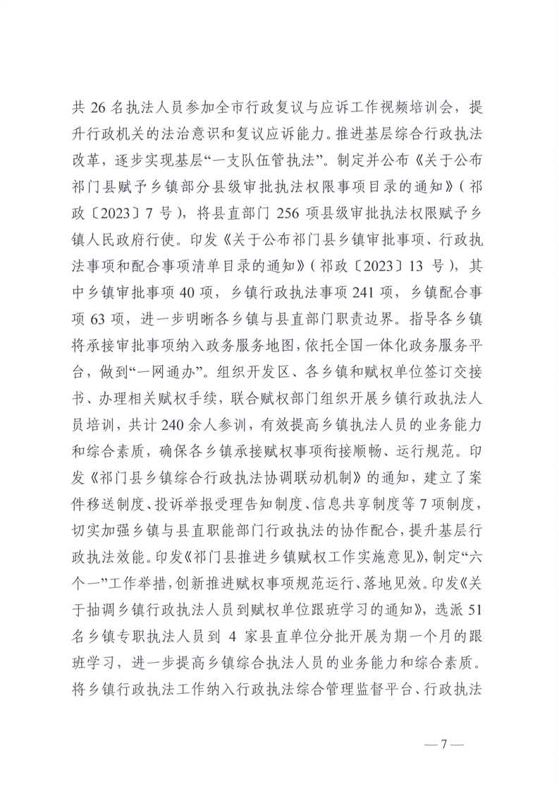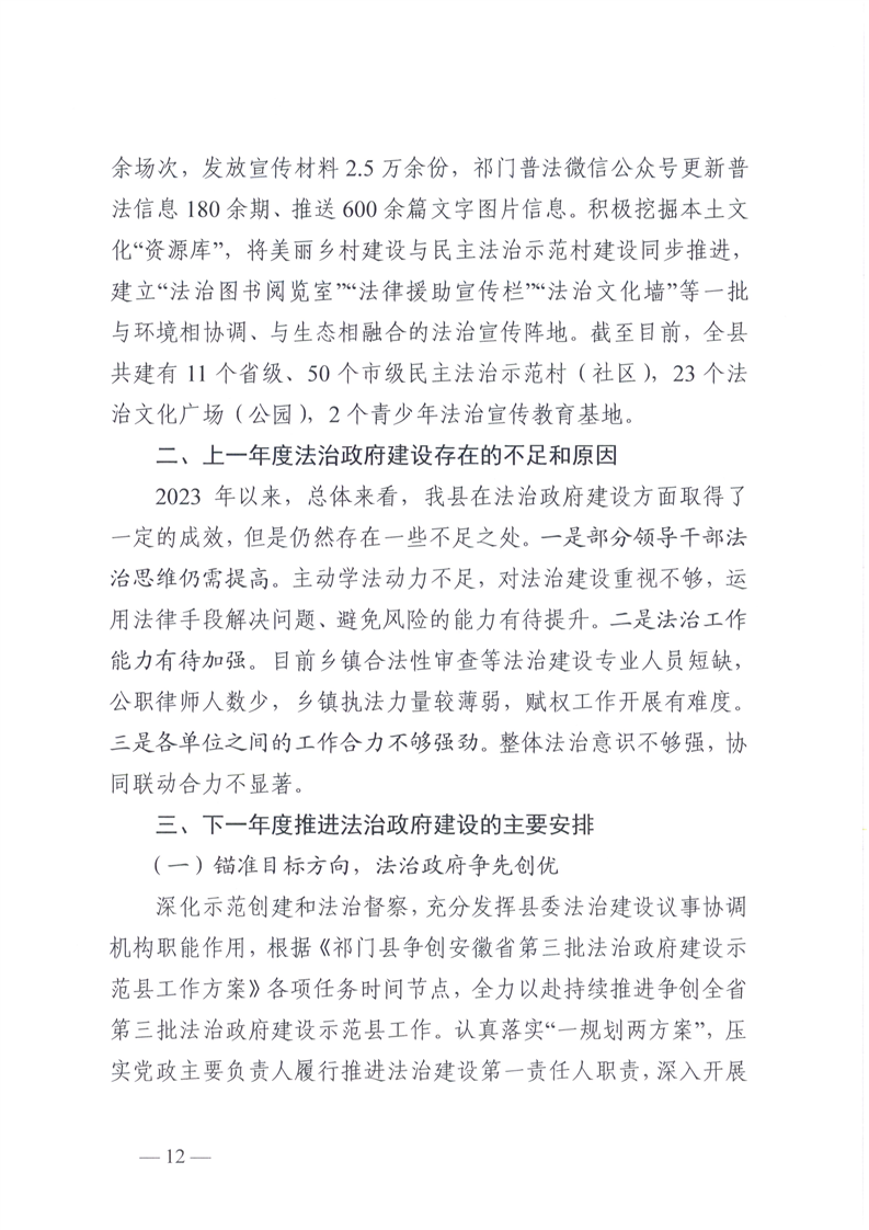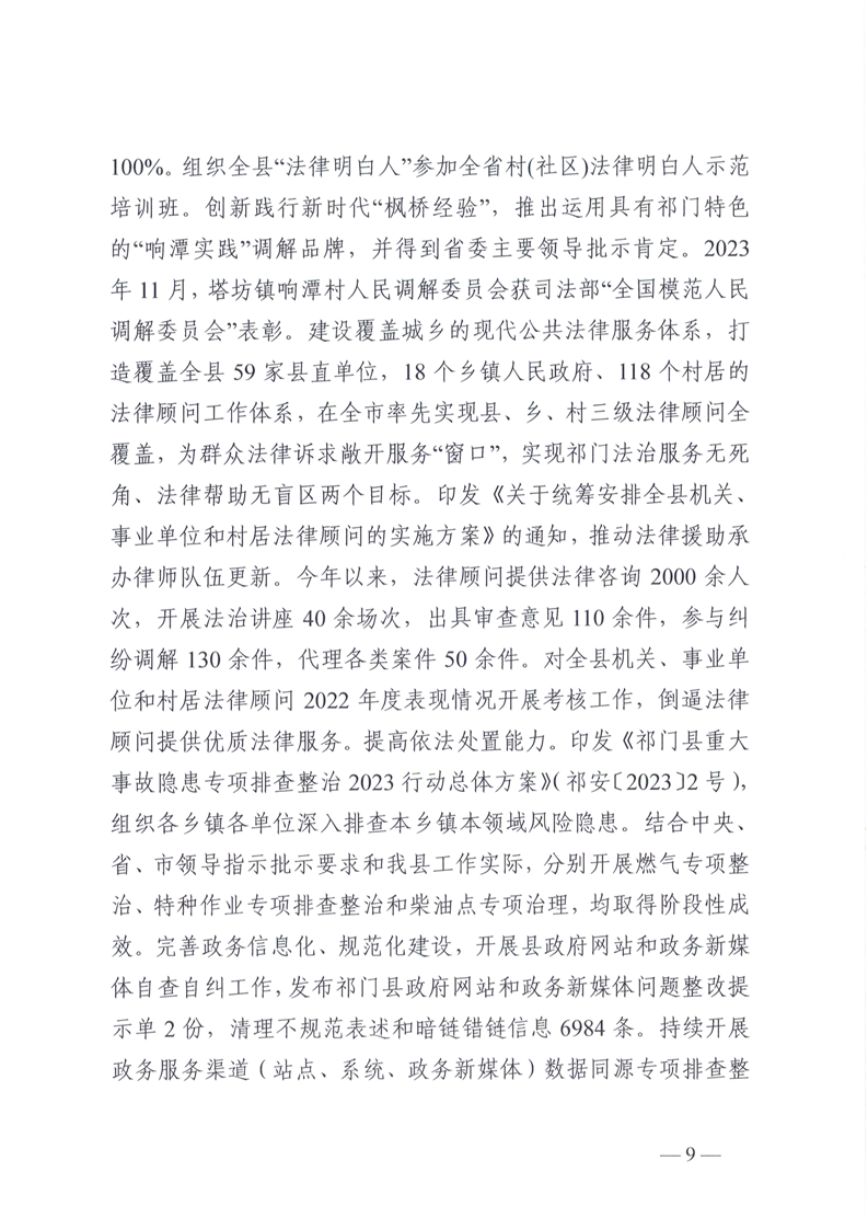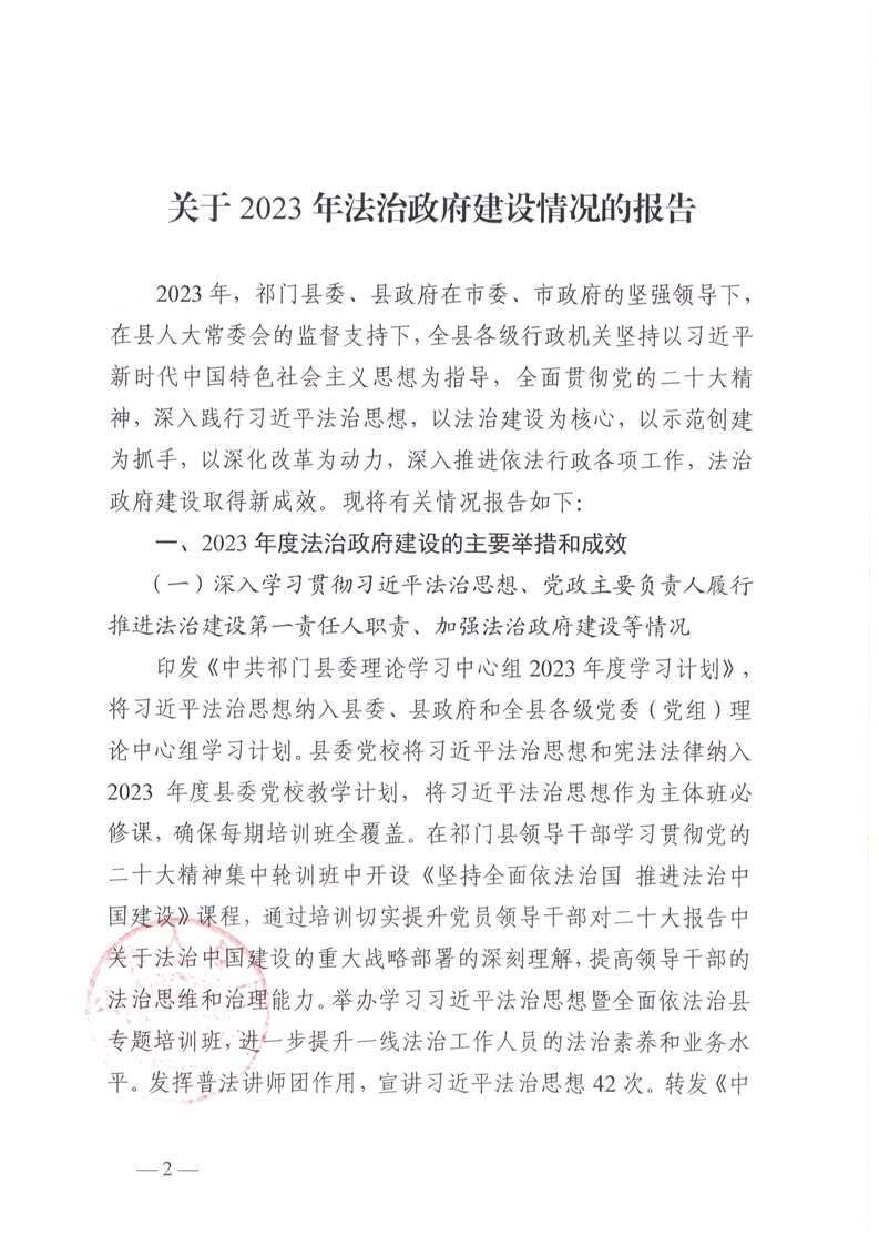 祁门县2023年度法治政府建设工作报告