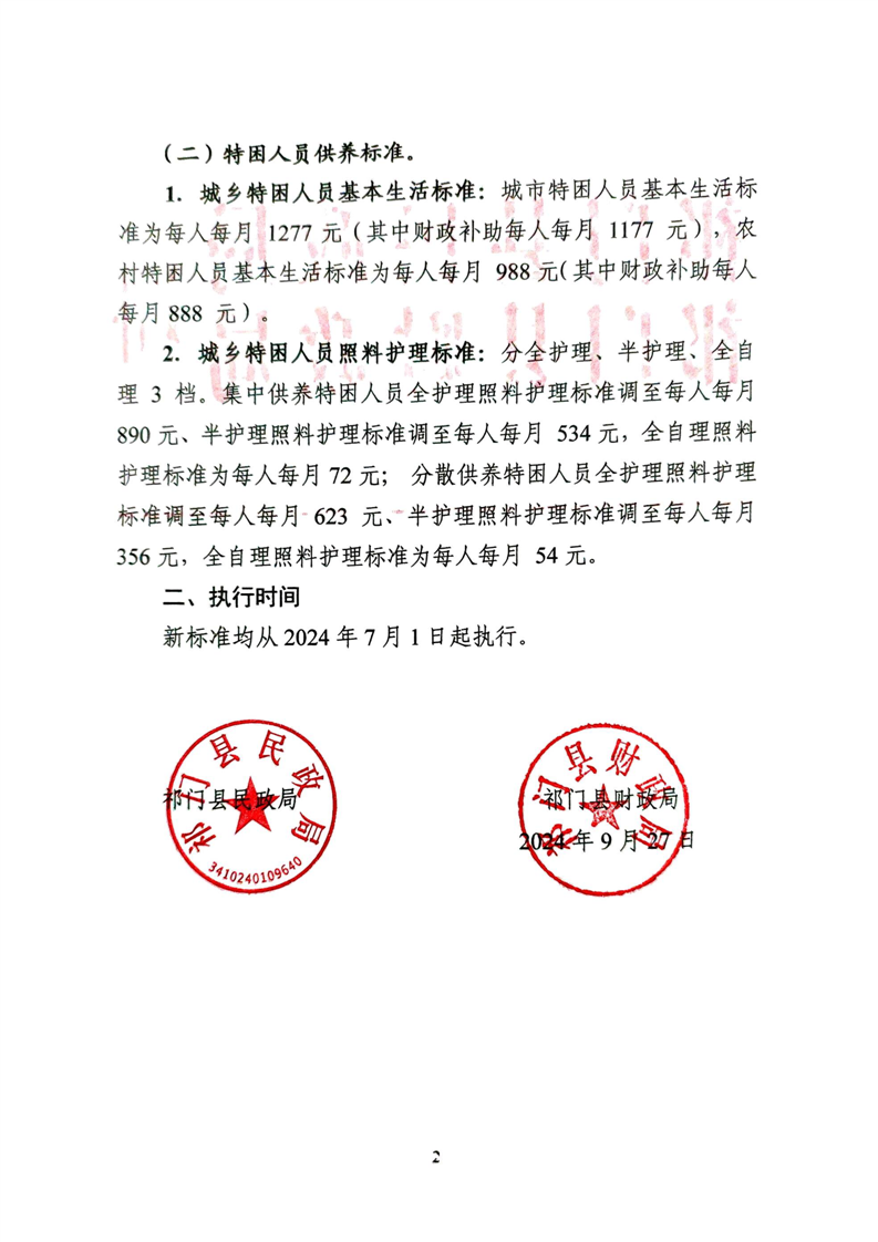 关于调整2024年社会救助标准的通知