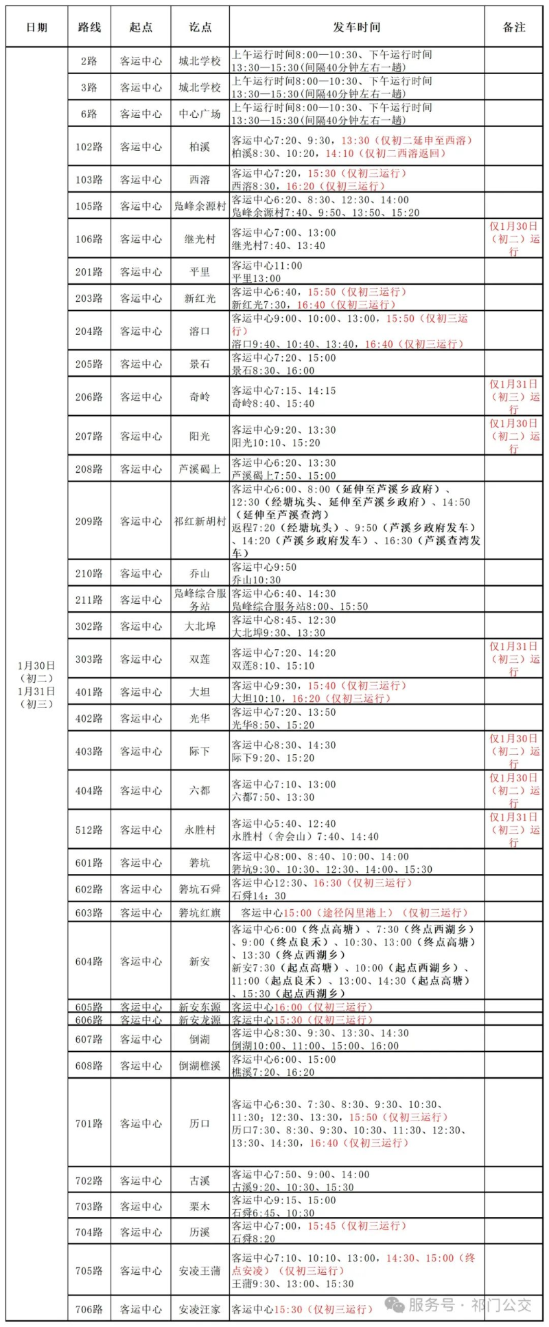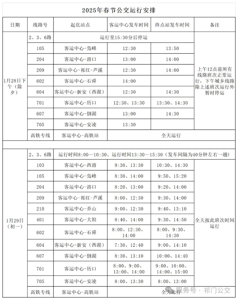为营造温馨、和谐的春节氛围,祁门公交结合需求,对2025年1月28日至1月31日(除夕至初三)期间公交班次进行调整,具体运营班次调整如下: