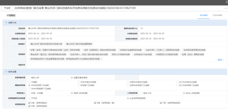 黄山市祁门县科技商务经济信息化局联合检查定向抽取计划20250616170427590