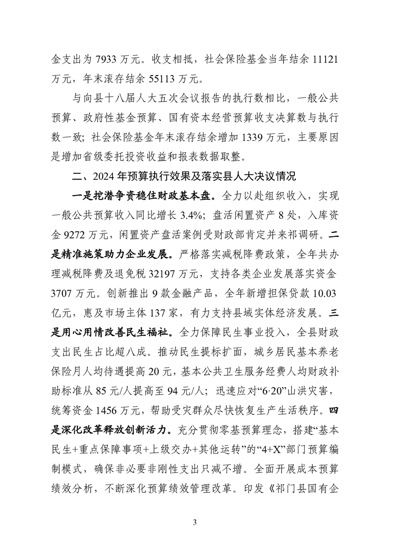 关于祁门县2024年财政决算(草案)情况和2025年上半年财政预算执行情况的报告