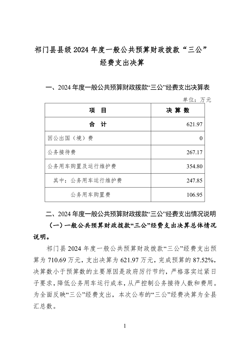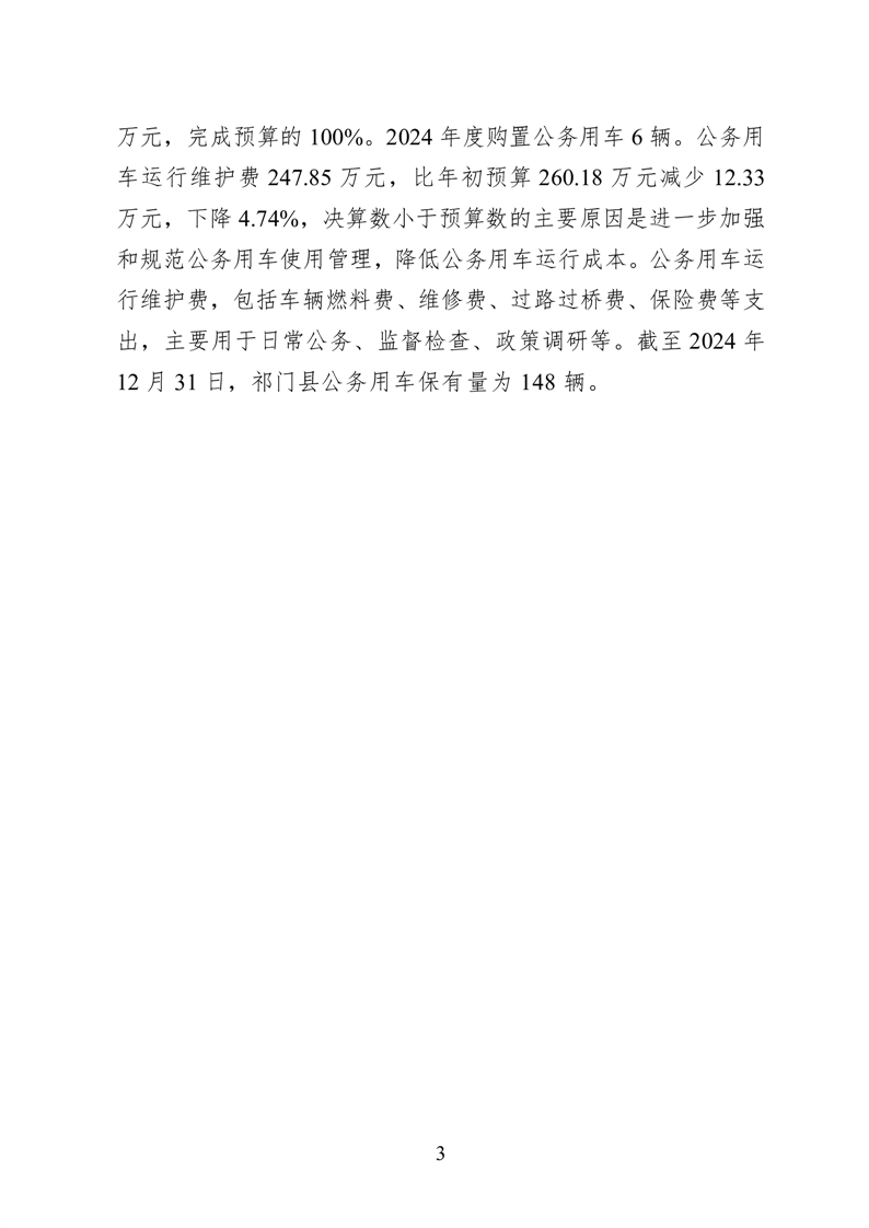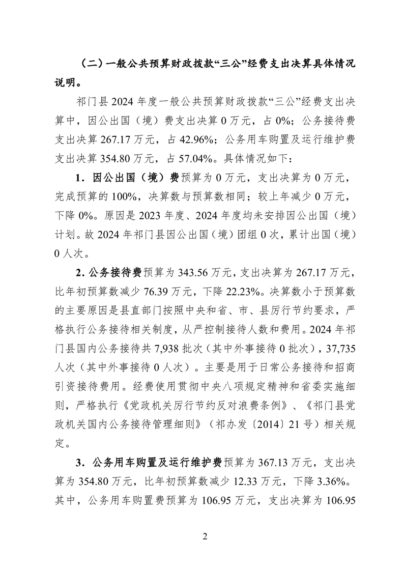 祁门县县级2024年度一般公共预算财政拨款“三公”经费支出决算