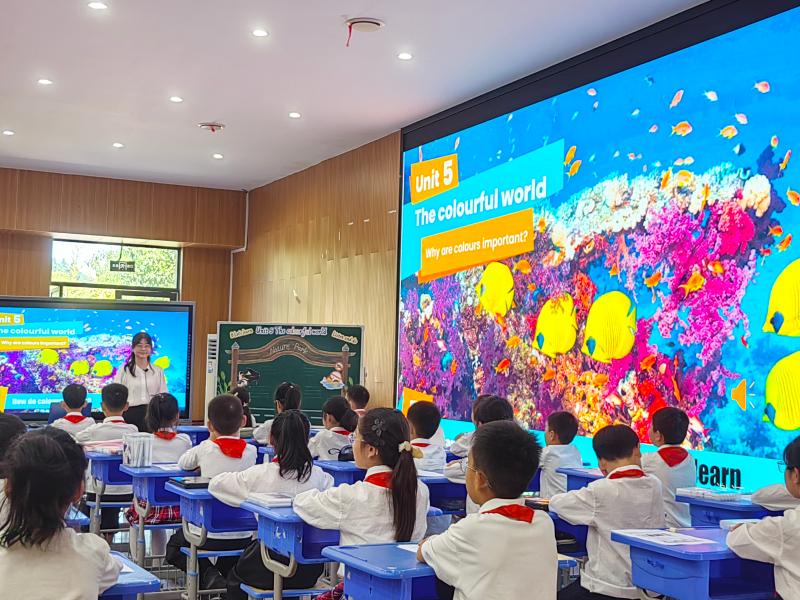 理论指导后,培训进入课堂实践展示环节。祁门县实验学校小学英语教师黄媚霞现场执教三年级上册示范课《Unit 5 The colourful world!B Let's learn Colours are useful!》。黄媚霞老师以生活情境为切入点,将颜色类英语单词融入趣味教学活动,通过“情境感知—互动体验—语言运用”的环环相扣设计,引导学生轻松掌握知识点,充分激发低年级学生英语学习兴趣,生动展现了新课标倡导的情境化教学模式优势。