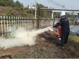 9时30分,演练正式启动。演练模拟堆放材料场地突发火情,巡检人员发现火情后按下报警按钮,指挥组接到警情后,立即启动应急预案,迅速切断气源、疏散人员,并第一时间拨打119报警。灭火组携带灭火器赶赴现场实施初期扑救,利用干粉灭火器对准火根精准喷射,成功将“火势”控制。整个演练过程紧张有序,各环节衔接紧密,充分检验了应急预案的科学性和员工实战能力。随后,专项工作组指导员现场示范灭火器操作,参训人员依次上手体验灭火实战,在模拟火堆前熟练完成整套操作流程。