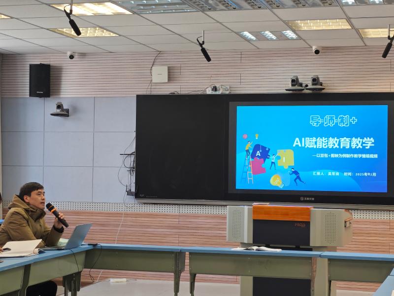 专题分享环节更是干货满满。阊江小学副校长吴军良则以《AI赋能教育教学——以豆包+剪映为例制作教学情境视频》为主题,讲解了AI工具在教学资源制作中的具体应用。城北学校政教处副主任钱辰瑾以《师智共生:小学语文课堂的人机协同实践探索》为题,分享了人机协同教学的实践经验。