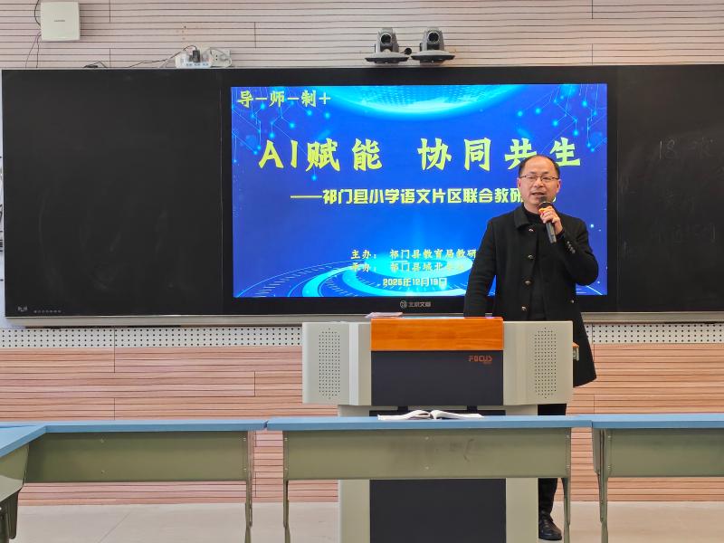 为探索构建以“导-师-制+”为核心的片区联合教研模式,深化“AI赋能课堂教学”实践探索,近日,祁门县小学语文“导-师-制+”片区联合教研活动在城北学校举行。本次活动由祁门县教研室主办、祁门县城北学校承办,第二、四片区学校分管教学副校长、教导主任、语文教研组组长及语文教师共同参与。