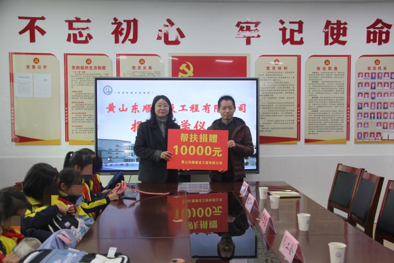 12月17日下午,祁门县阊江小学校园内爱心洋溢。在祁门县委教育工委委员、县教育局总督学吴素兰的陪同下,县总工会、黄山东顺建设工程有限公司一行来到阊江小学,开展捐资助学活动,为十名困难学生送上一份温暖与关怀。