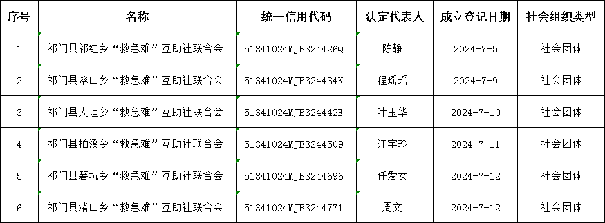 社会组织成立登记公告