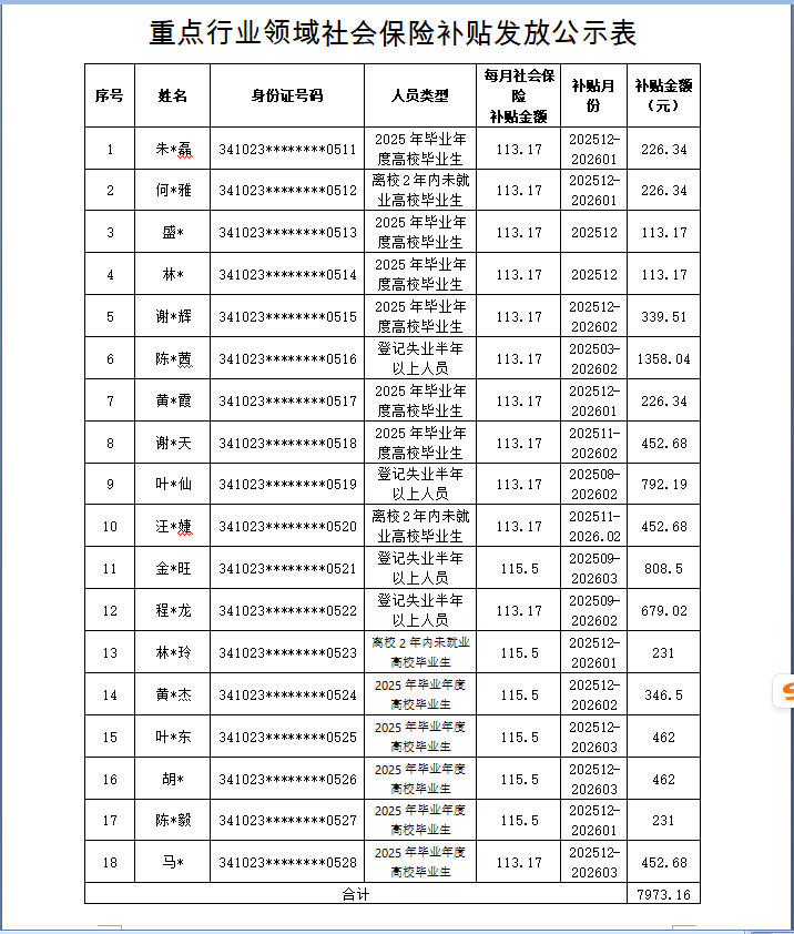 根据关于进一步加强援企稳岗扩就业政策措施全力稳就业促发展的通知(皖人社秘〔2025〕138号)文件精神,为了进一步规范我县社保补贴发放工作,现将祁门县2025年第二批重点行业领域社会保险补贴信息予以公示,接受社会监督。