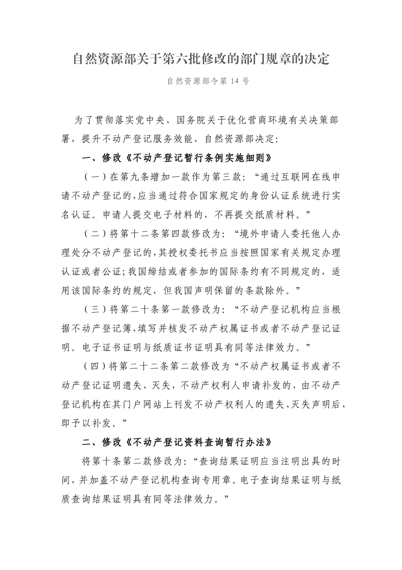 自然资源部关于第六批修改的部门规章的决定