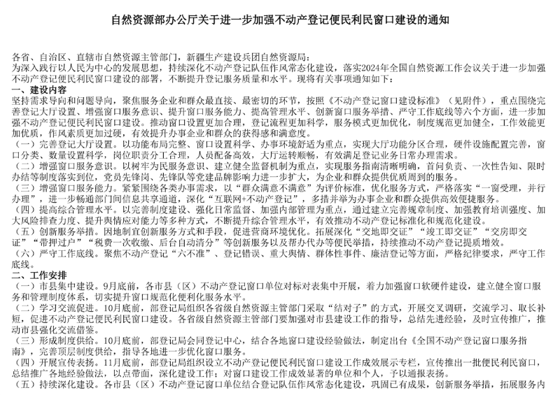 自然资源部办公厅关于进一步加强不动产登记便民利民窗口建设的通知