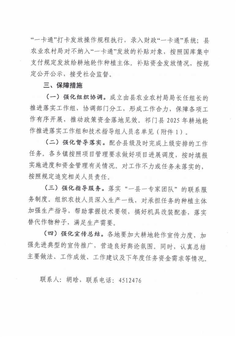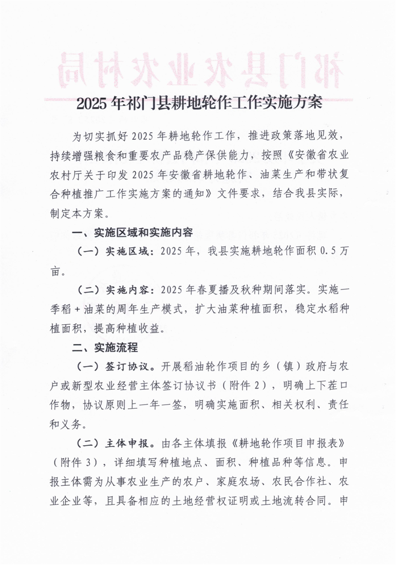 关于印发2025 年祁门县耕地轮作工作实施方案的通知