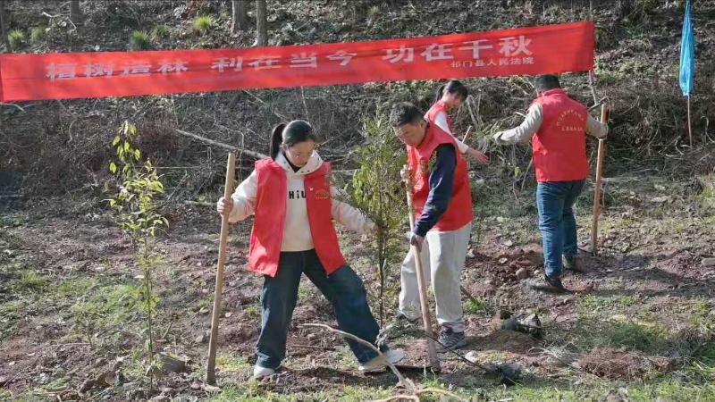 在祁门县柏溪乡公益诉讼补植复绿基地,植树现场一派热火朝天的劳动景象。来自各单位的干部职工与当地群众共百余人携手协作,挥锹铲土、扶苗定植、围堰浇水,每一道工序都有条不紊。大家在播种绿色的过程中感受劳动的喜悦,以躬身实践诠释生态保护责任,将生态文明理念转化为具体行动。