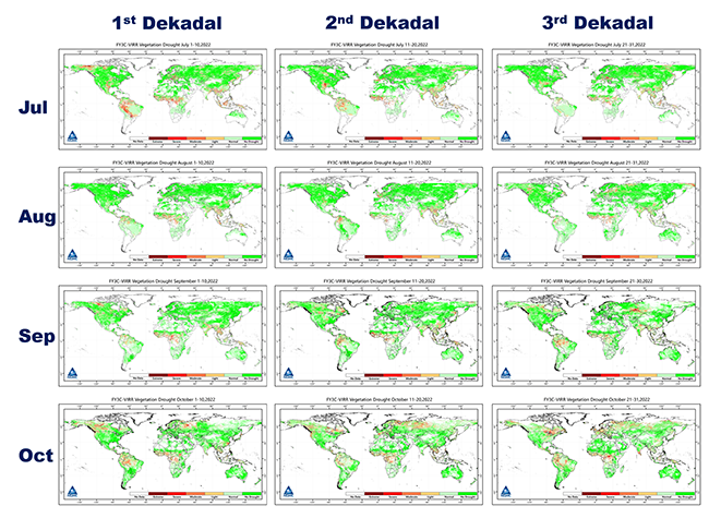 2022年7—10月全球农业干旱图 供图:国家卫星气象中心