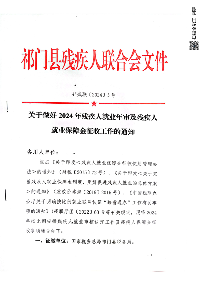 关于做好2024年残疾人就业年审及残疾人就业保障金征收工作的通知