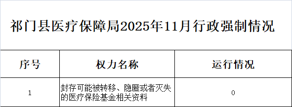 祁门县医疗保障局2025年11月行政强制执行情况