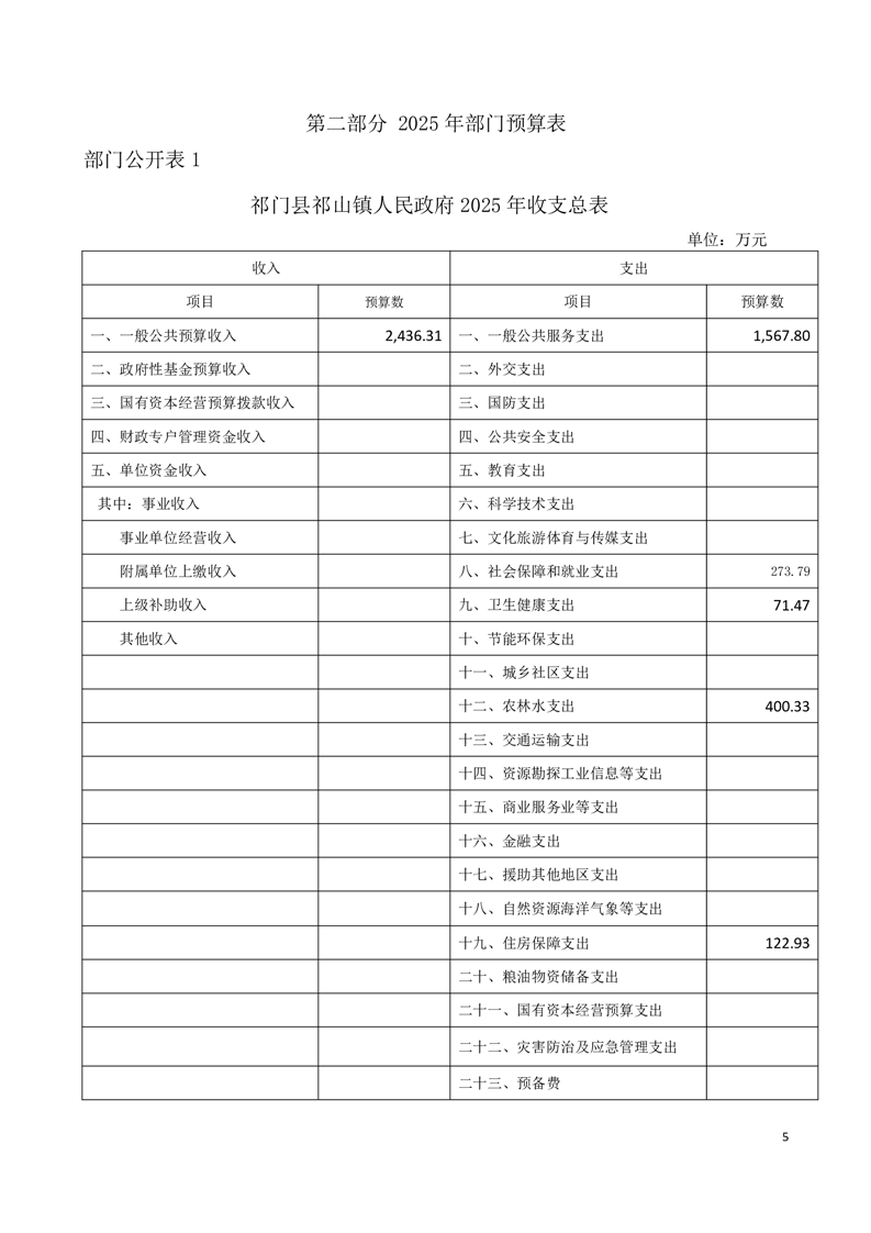 祁门县祁山镇人民政府2025年部门预算公开.pdf