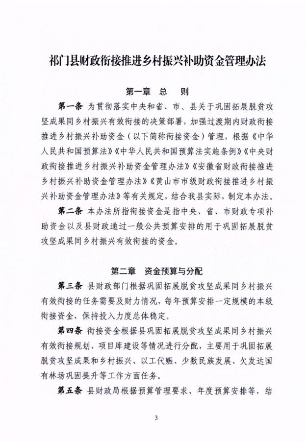祁门县财政衔接推进乡村振兴补助资金管理办法