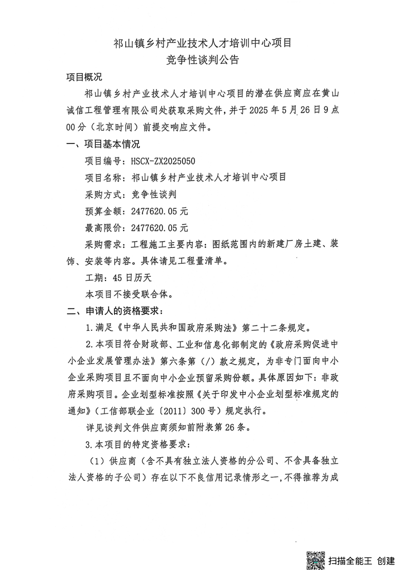 祁山镇乡村产业技术人才培训中心项目竞争性谈判公告