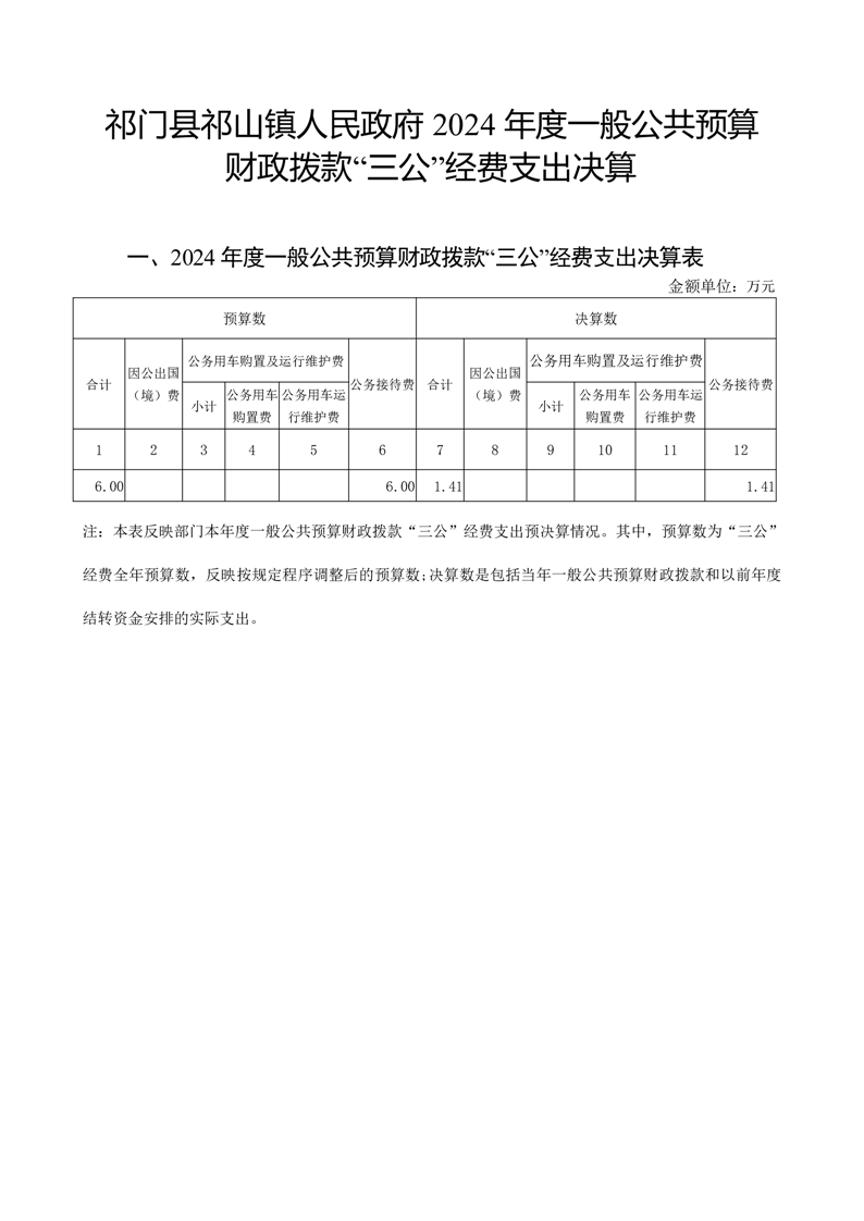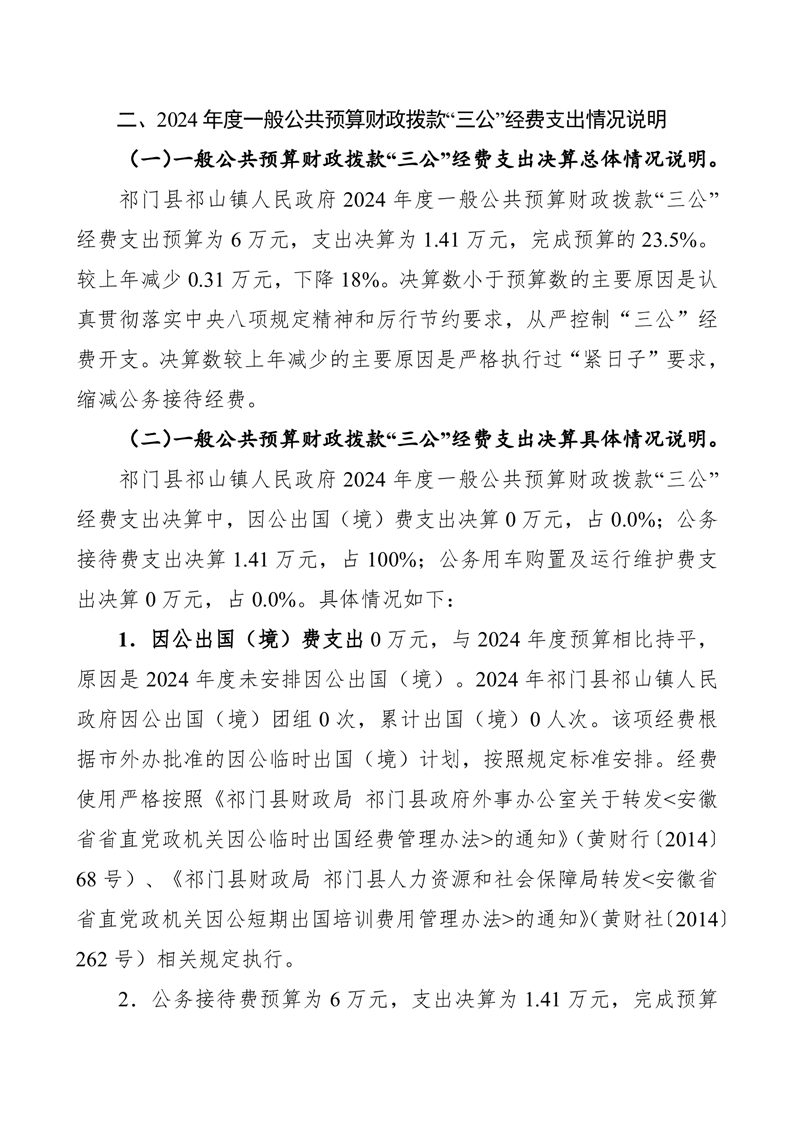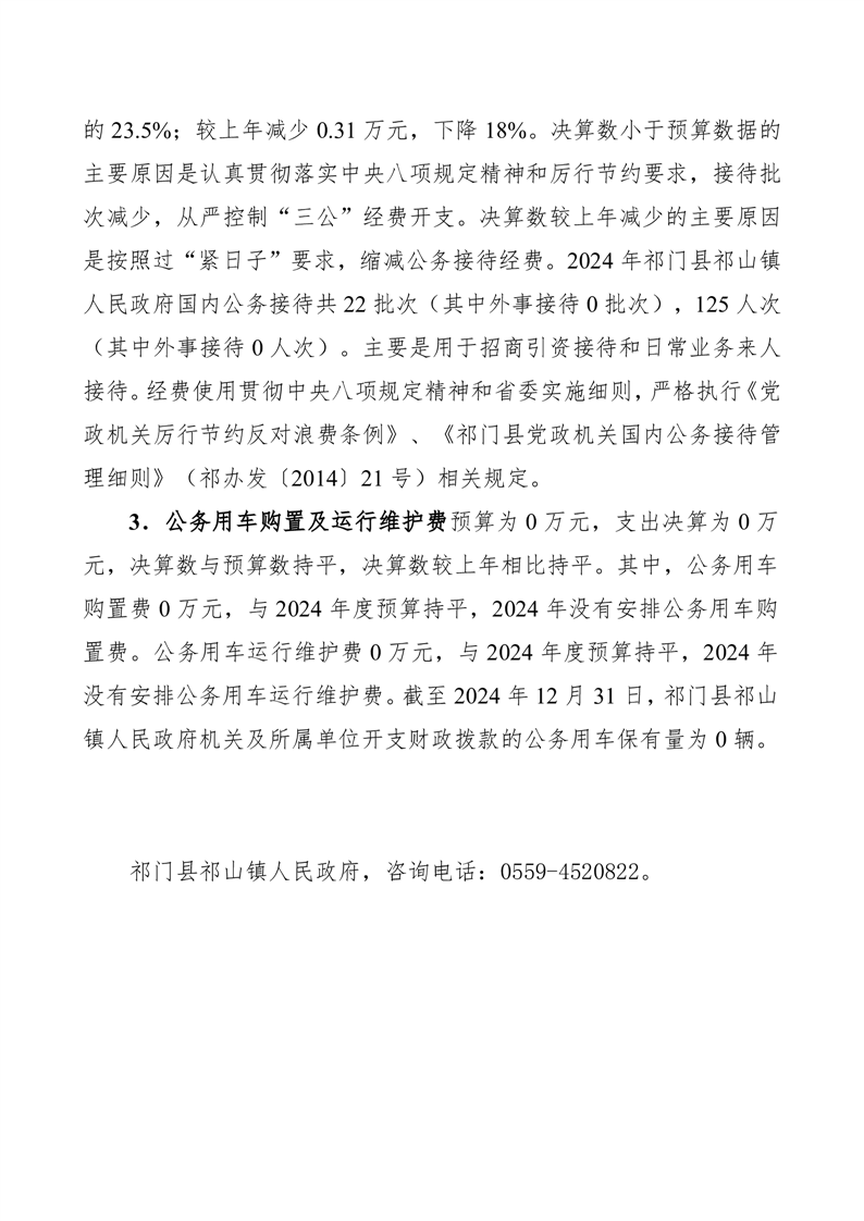 祁门县祁山镇人民政府2024年决算三公经费公开