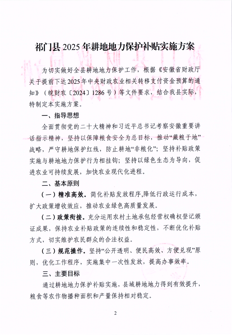 关于印发《祁门县2025年耕地地力保护补贴实施方案》的通知