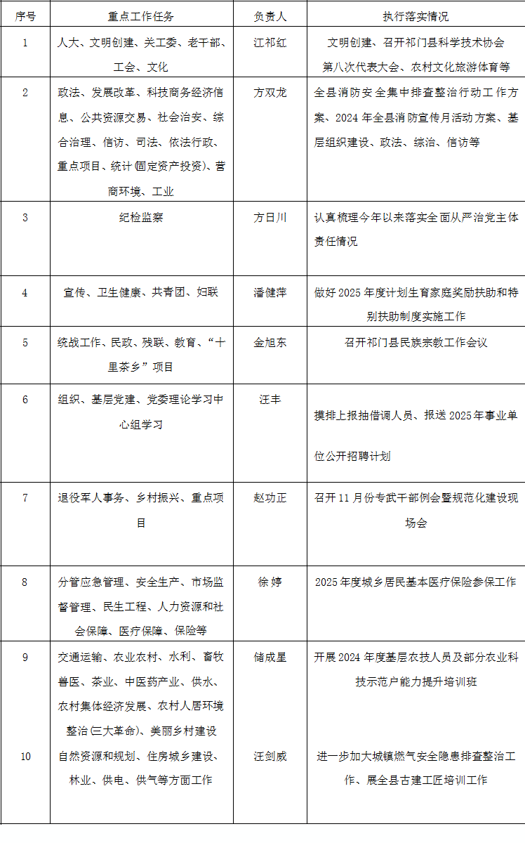 2024年12月金字牌政府重点工作分解、执行及落实情况