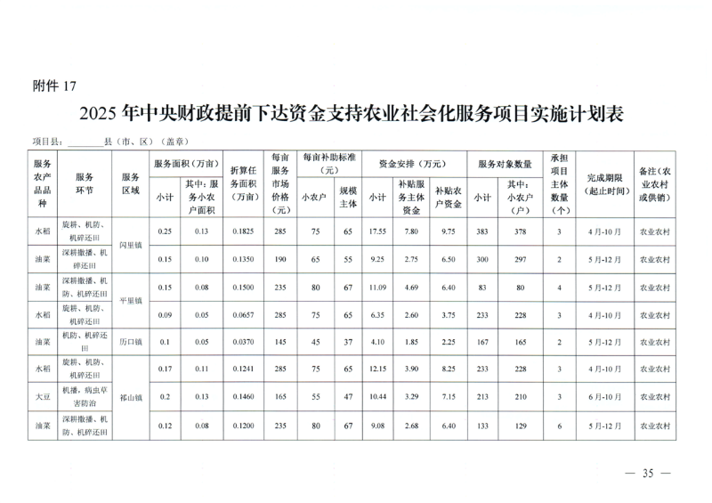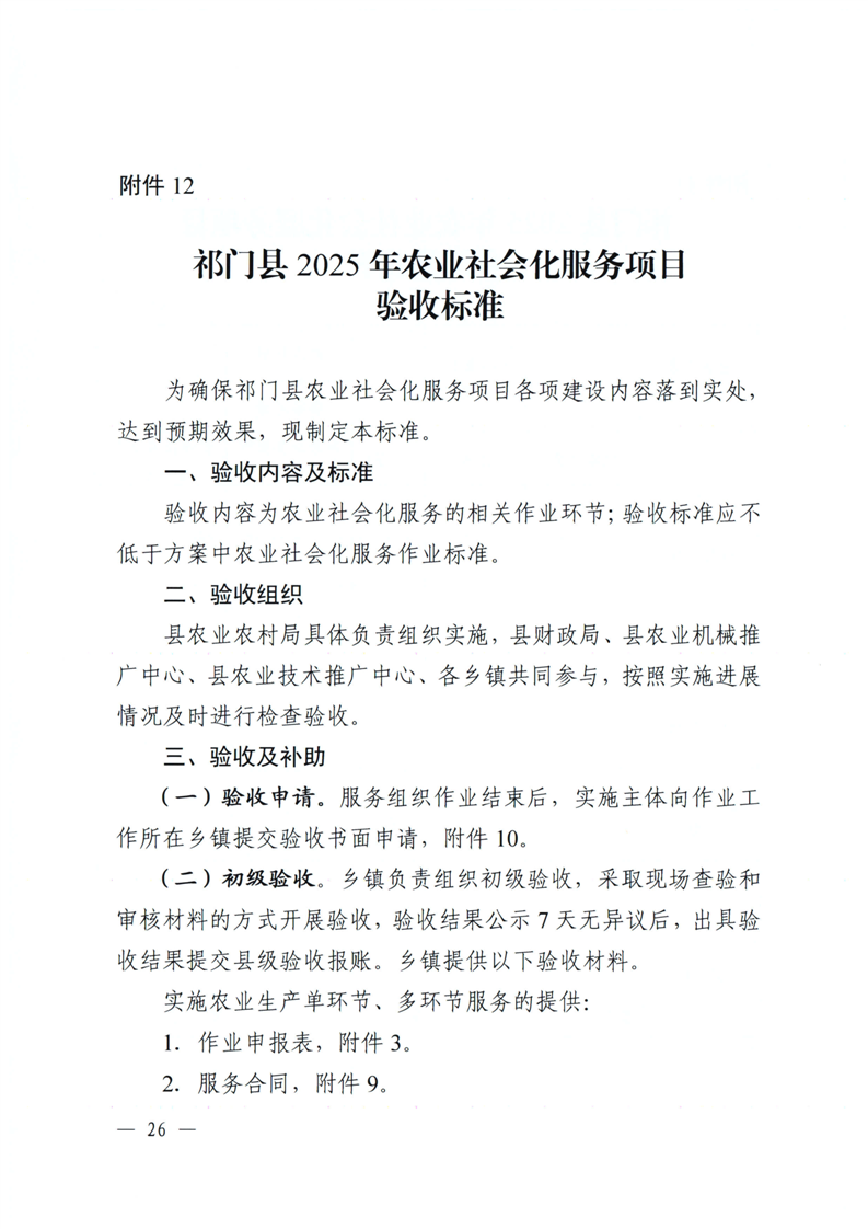关于印发《祁门县2025年中央财政提前下达资金支持农业社会化服务项目实施方案》的通知