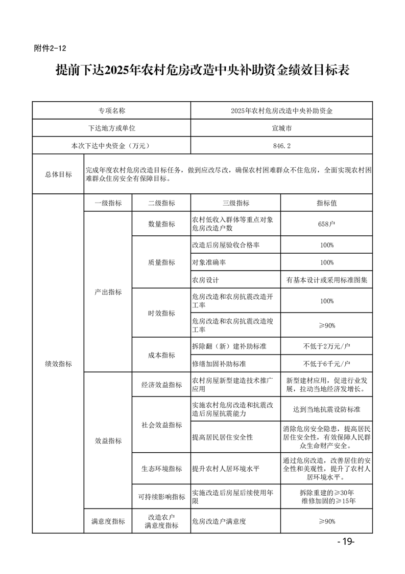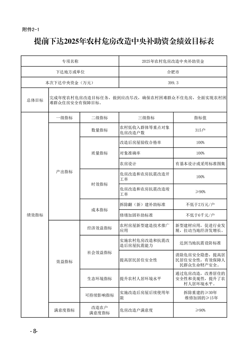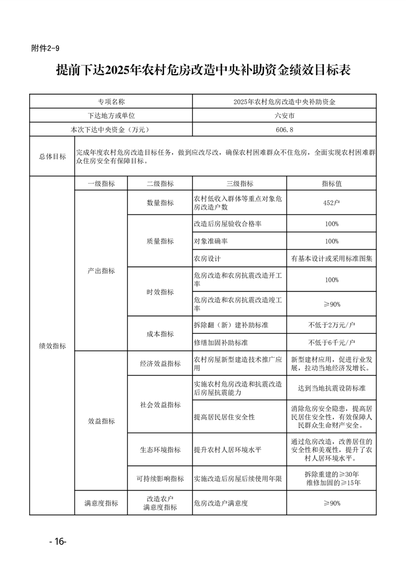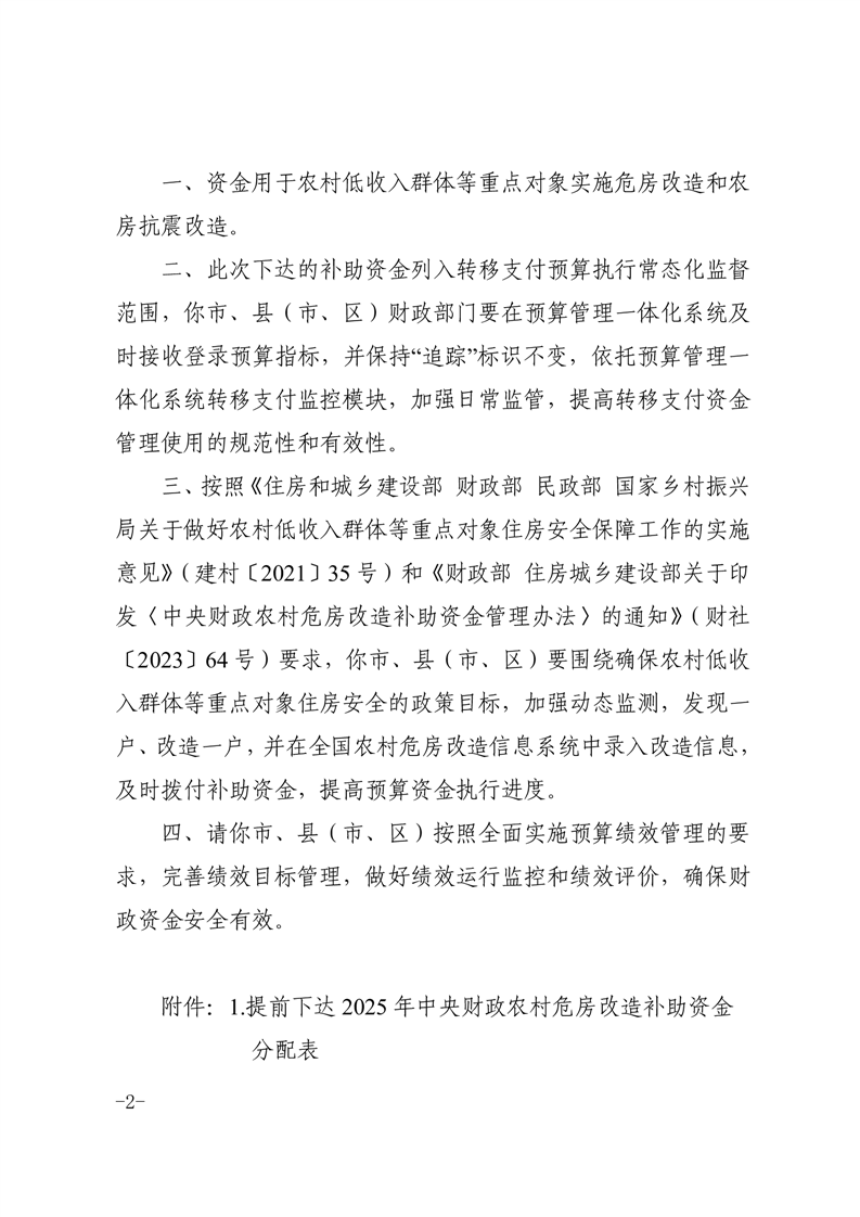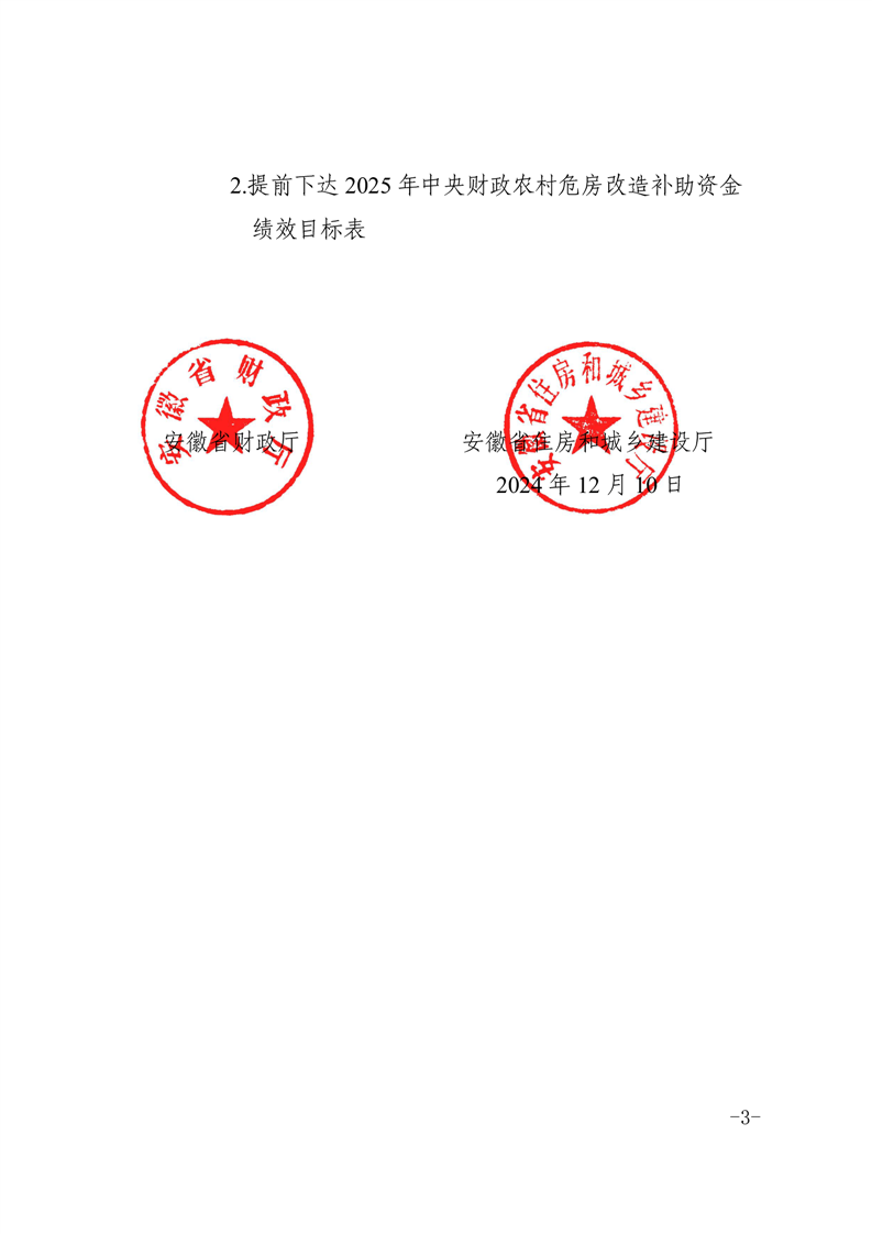 安徽省财政厅安徽省住房和城乡建设厅关于提前下达2025年中央财政农村危房改造补助资金预算的通知