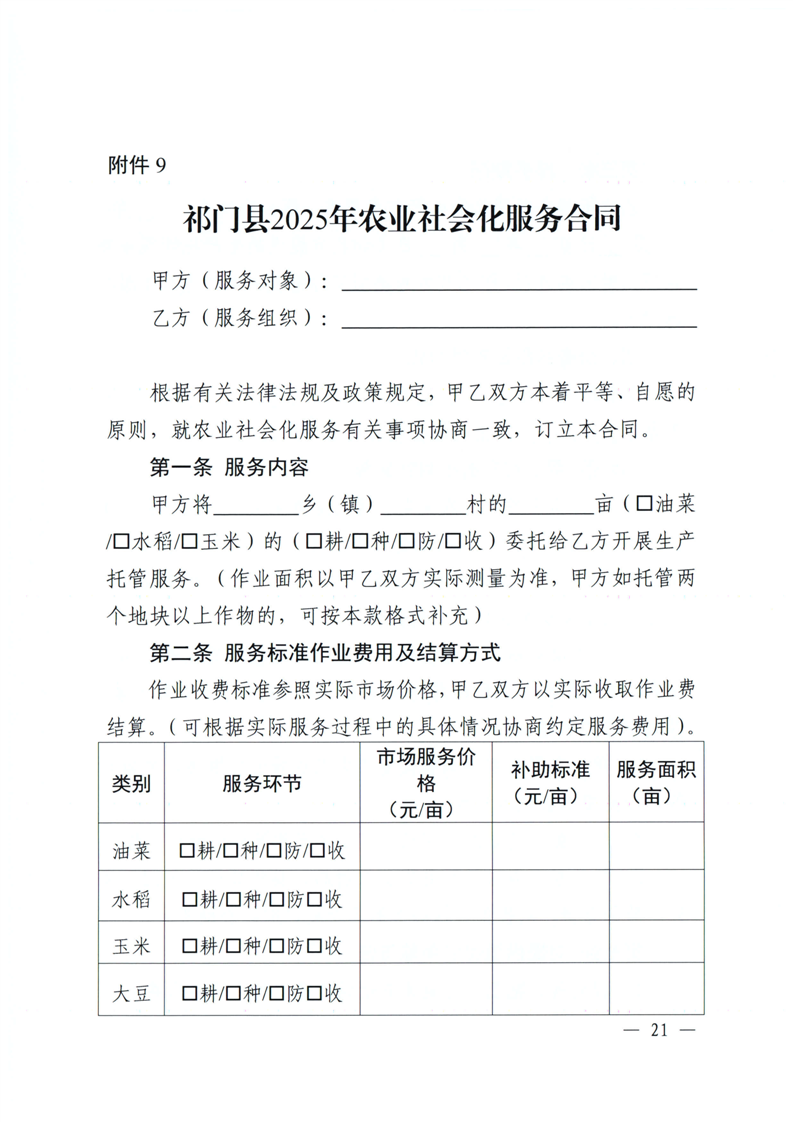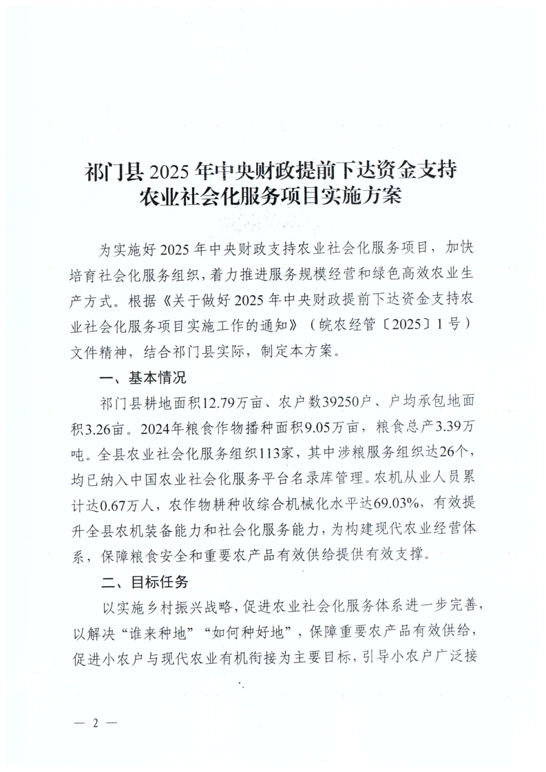 关于印发《祁门县2025年中央财政提前下达资金支持农业社会化服务项目实施方案》的通知