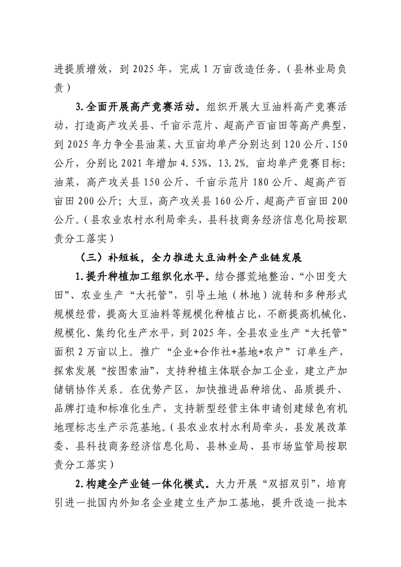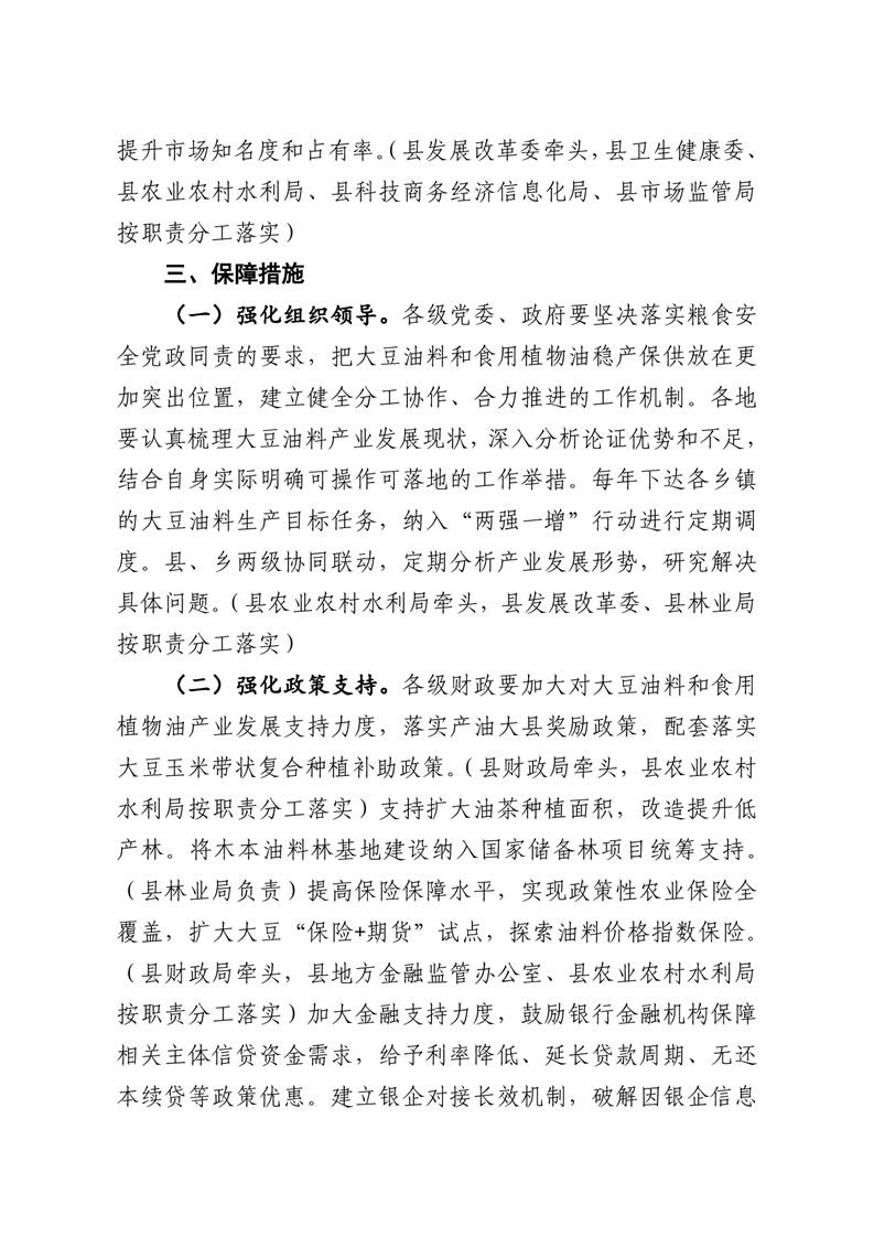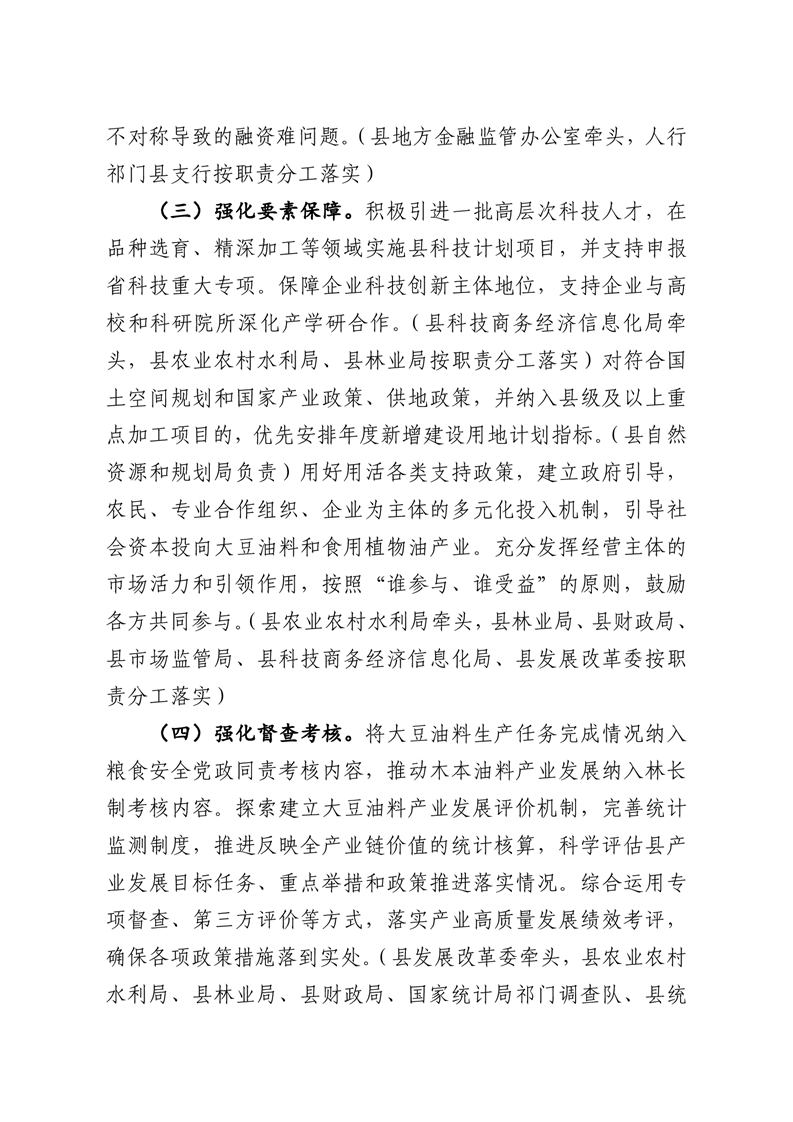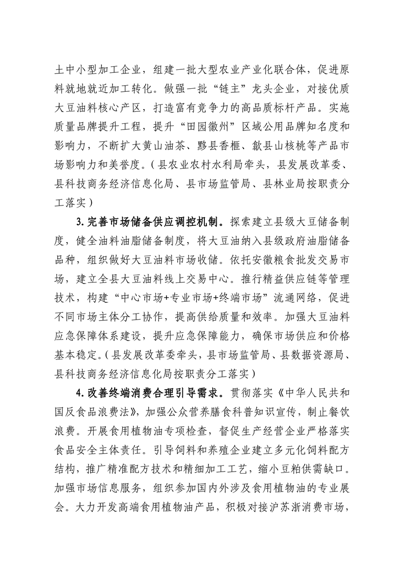 祁门县保障大豆油料和食用植物油供应安全实施方案
