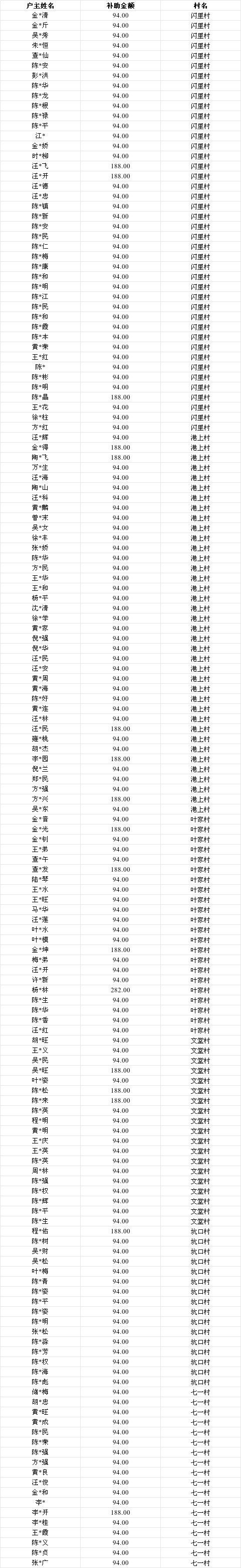 闪里镇2026年2月农村残疾人生活救助资金发放表
