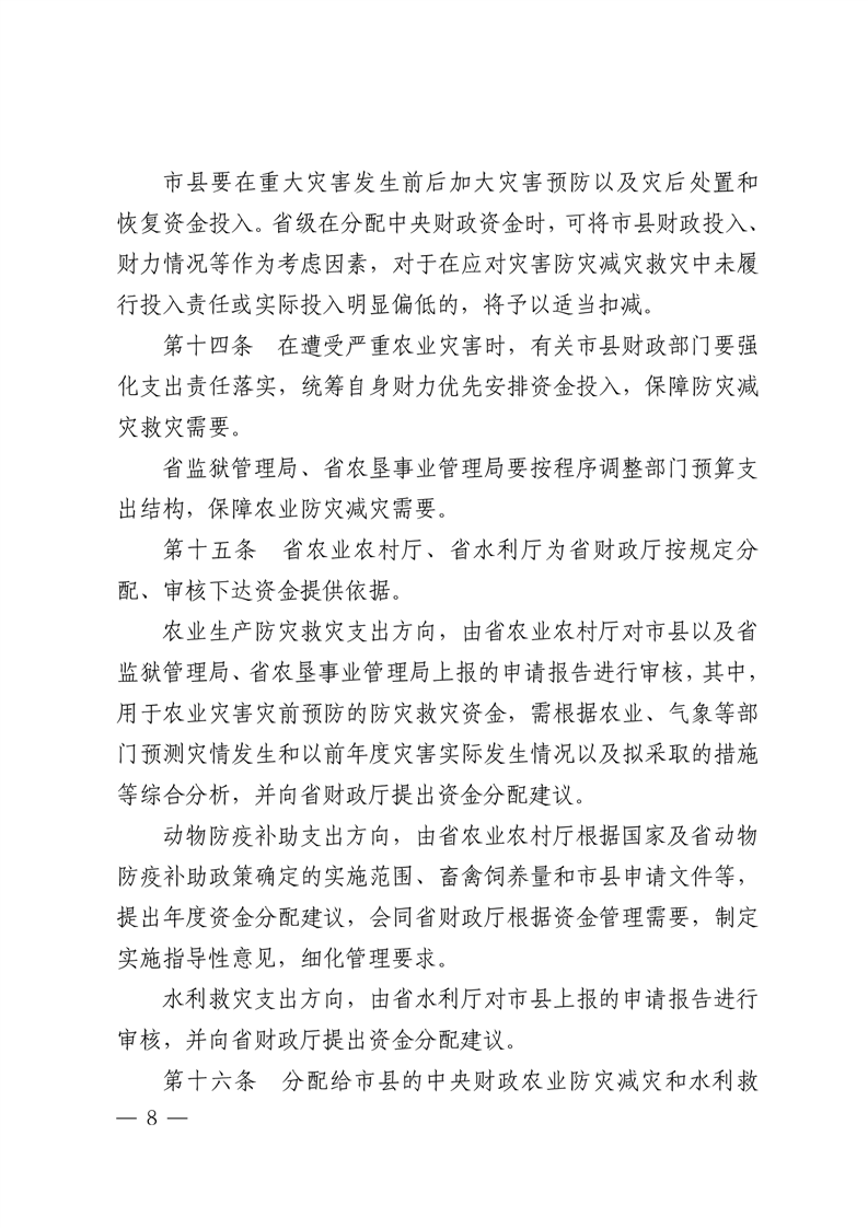 安徽省中央财政农业防灾减灾和水利救灾资金管理实施细则