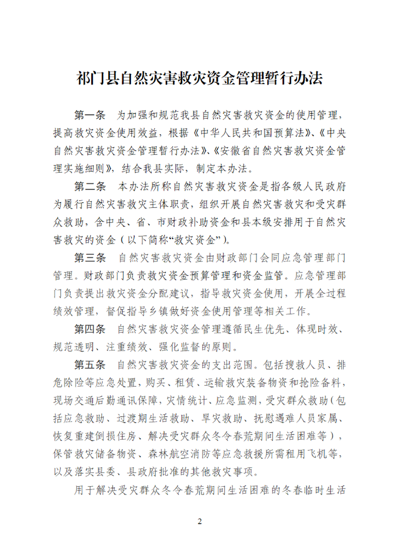 关于印发《祁门县自然灾害救灾资金管理暂行办法》的通知