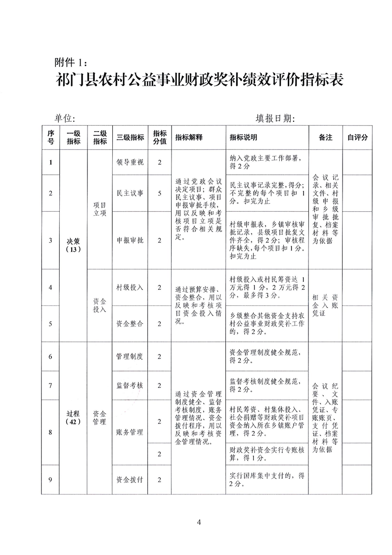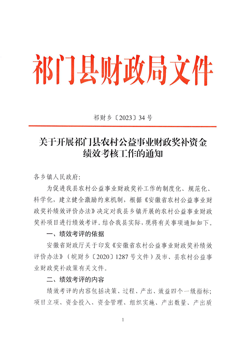 关于开展祁门县农村公益事业财政奖补资金绩效考核工作的通知