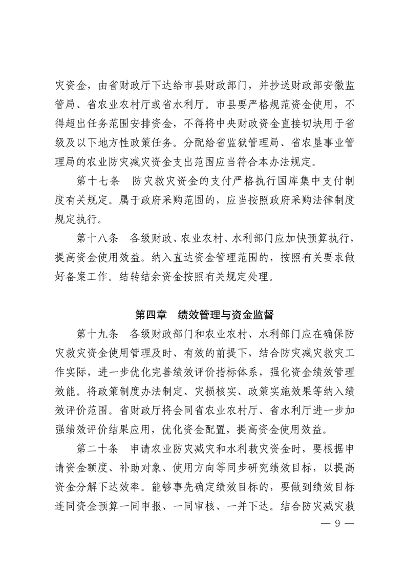 安徽省中央财政农业防灾减灾和水利救灾资金管理实施细则
