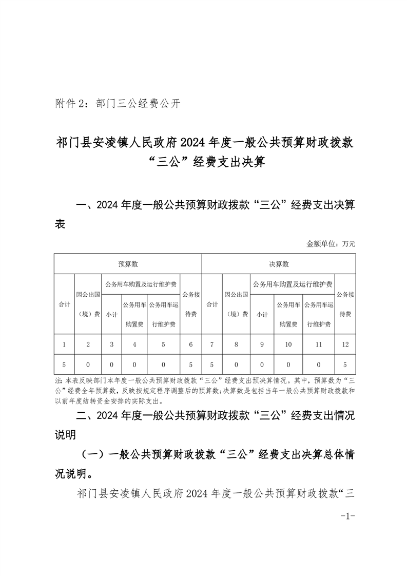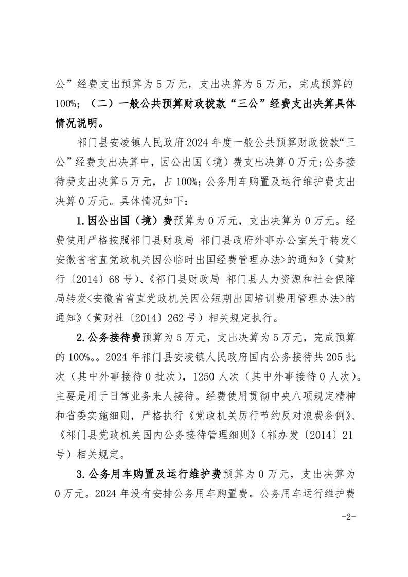祁门县安凌镇人民政府2024年一般公共预算“三公”经费决算