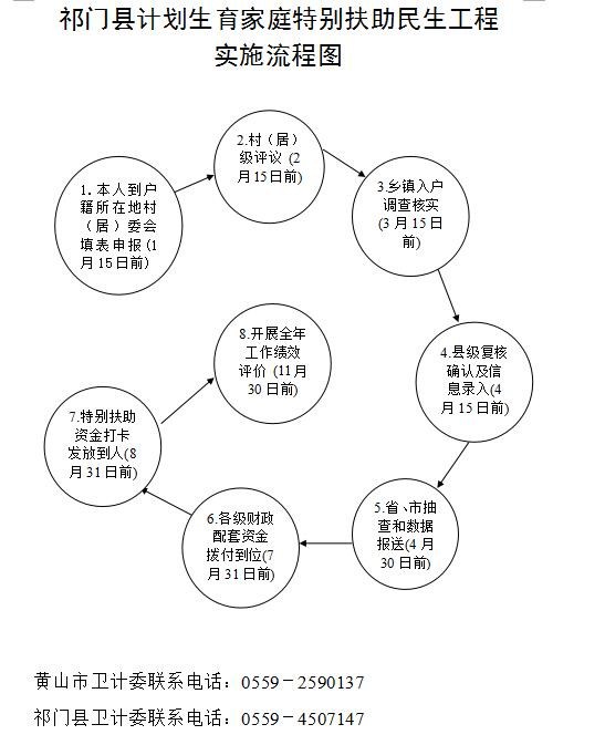 祁门县计划生育家庭特别扶助民生工程实施流程图