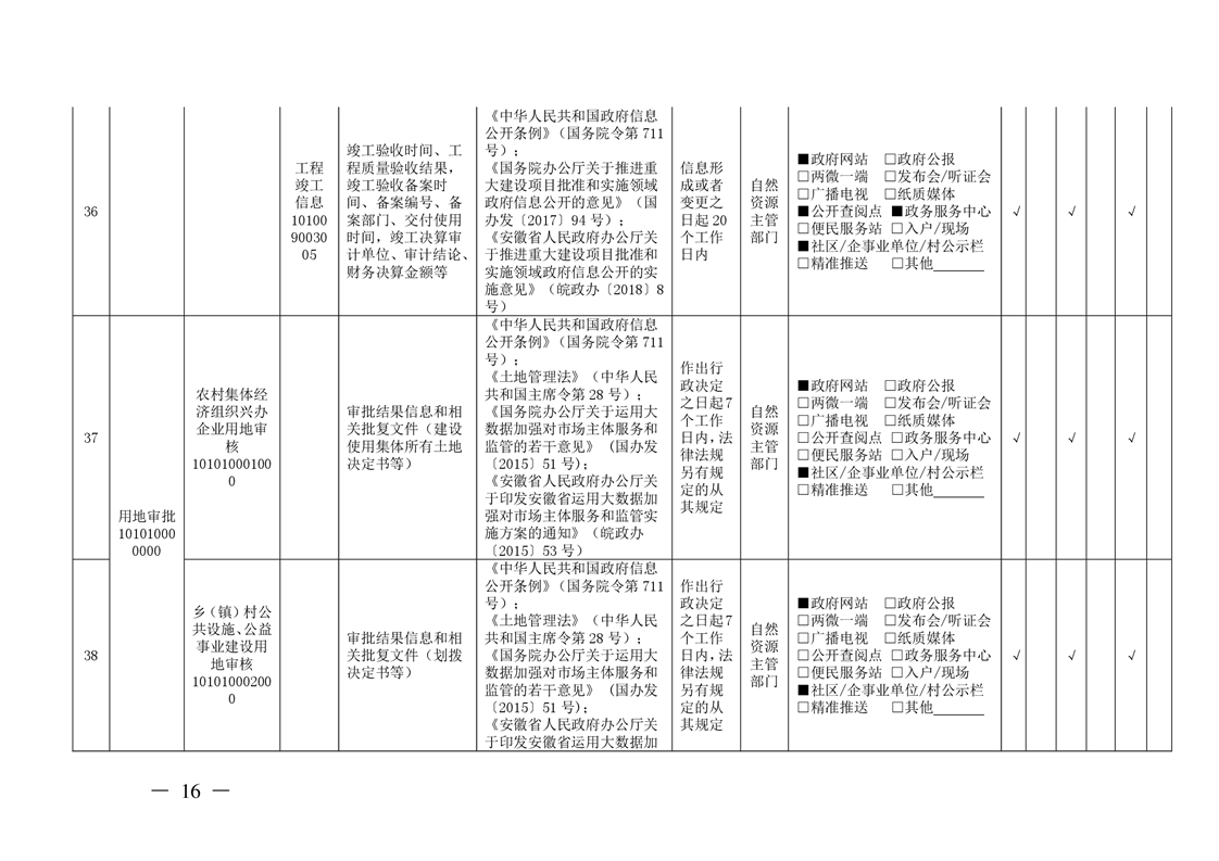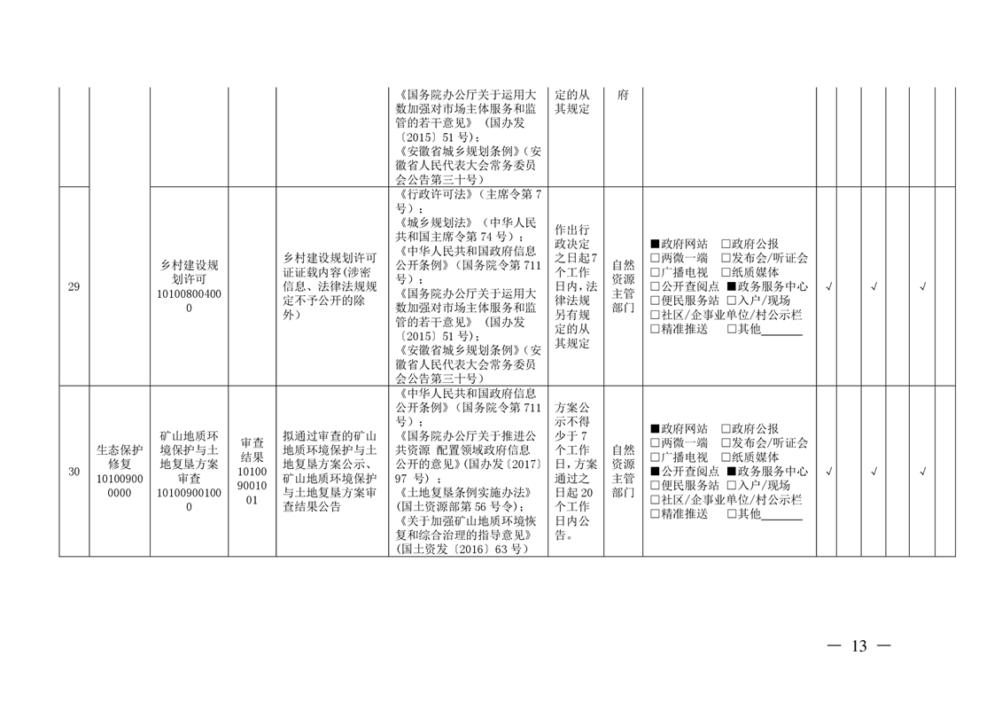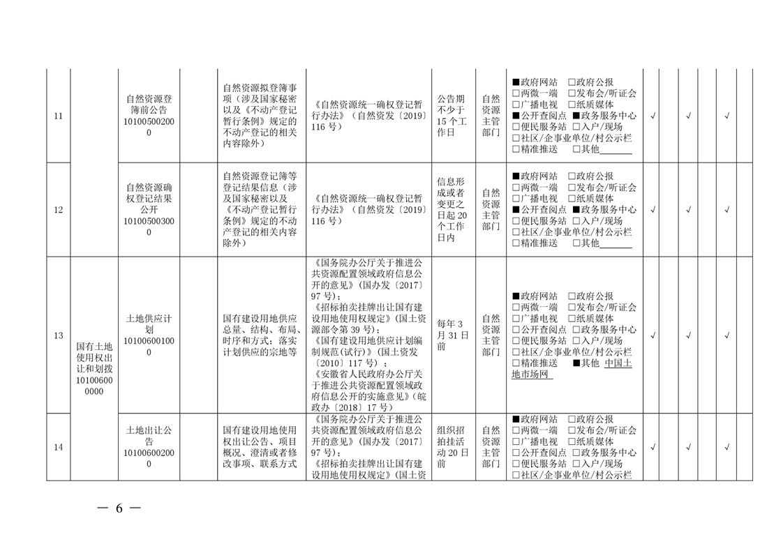 安徽省自然资源厅关于印发安徽省自然资源领域基层政务公开标准目录的通知