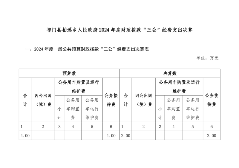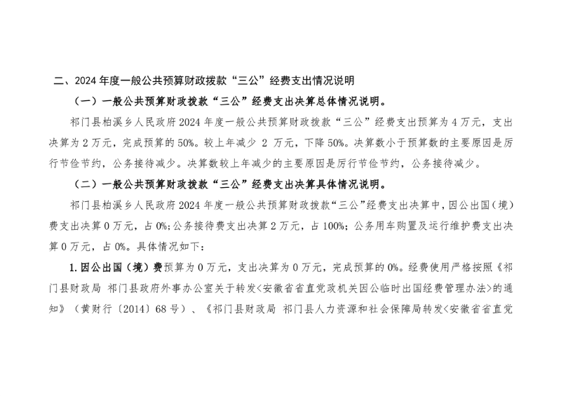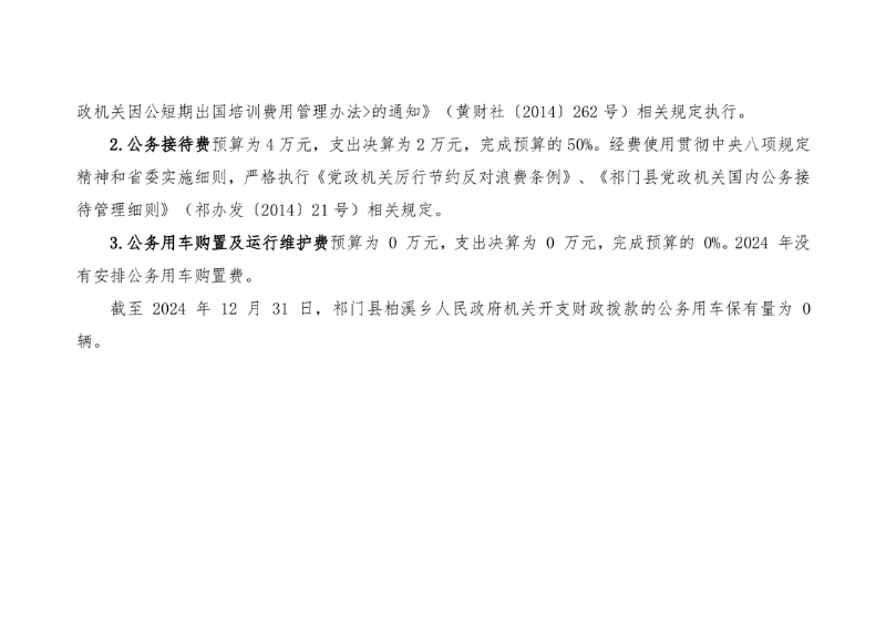 祁门县柏溪乡2024年度一般公共预算财政拨款“三公”经费支出决算