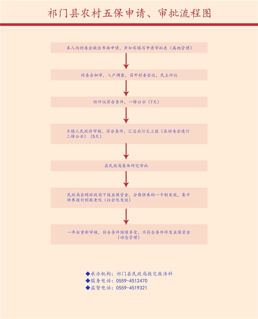 祁门县农村五保申请、审批流程图