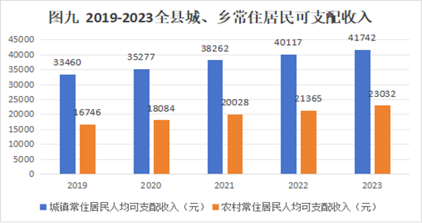 全年全体居民人均可支配收入30440元,同比增长7.4%。按常住地分,城镇常住居民人均可支配收入41742元,同比增长4.1%;农村常住居民人均可支配收入23032元,同比增长7.8%。城乡居民收入比为1.81:1,比上年同期缩小0.07。
