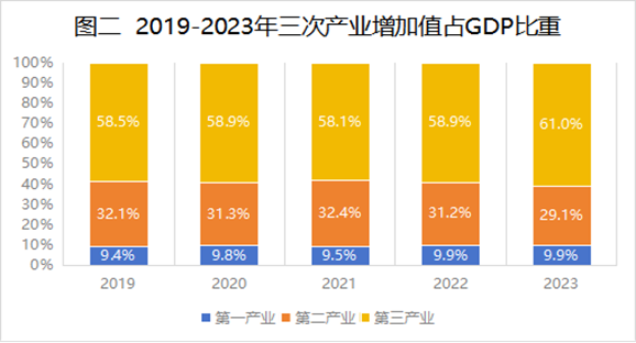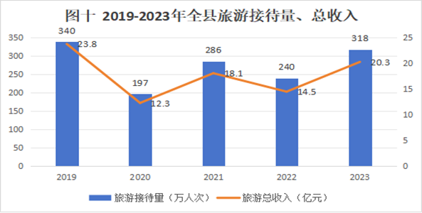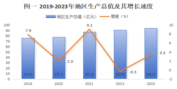 根据地区生产总值统一核算结果,2023年,全县实现地区生产总值945174万元,按可比价格计算,比上年增长3.4%。其中,第一产业增加值93255万元,比上年增长4.3%;第二产业增加值274955万元,比上年下降1.2%;第三产业增加值576964万元,比上年增长5.6%。第一产业增加值占生产总值比重为9.9%,第二产业增加值比重为29.1%,第三产业增加值比重为61.0%。