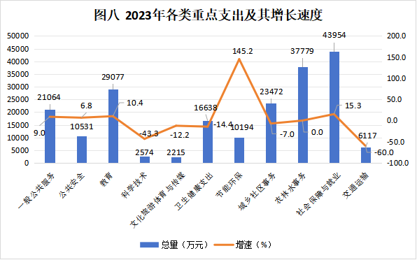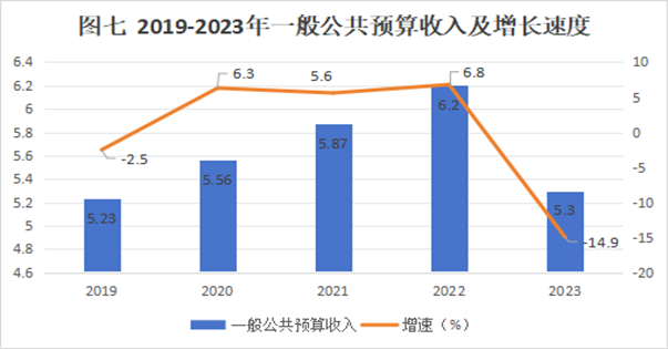 全年完成一般公共预算收入5.3亿元,同比下降14.9%。其中,税收收入2.7亿元,同比下降11.4%,税收收入占一般公共预算收入的比重50.9%。完成一般公共预算支出22.2亿元,同比下降1.2%。重点支出中,公共安全支出增长6.9%,科学技术支出下降43.3%,社会保障和就业支出增长15.3%,教育支出增长10.4%,卫生健康支出下降14.4%,城乡社区事务支出下降7.0%。全年兑现各类财政涉企奖补资金1721万元。