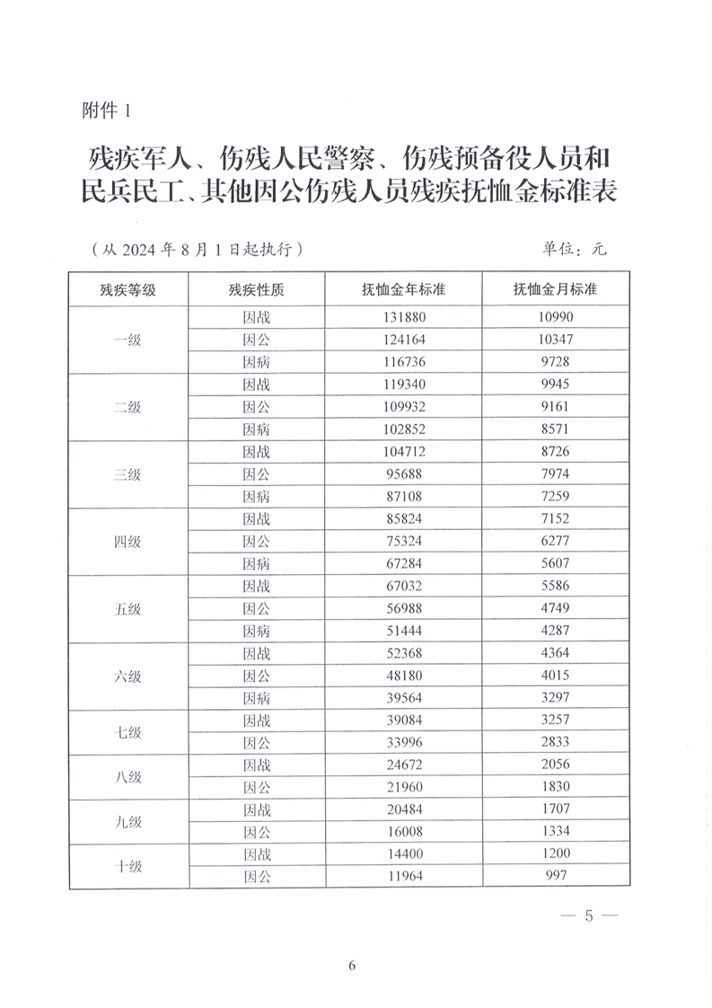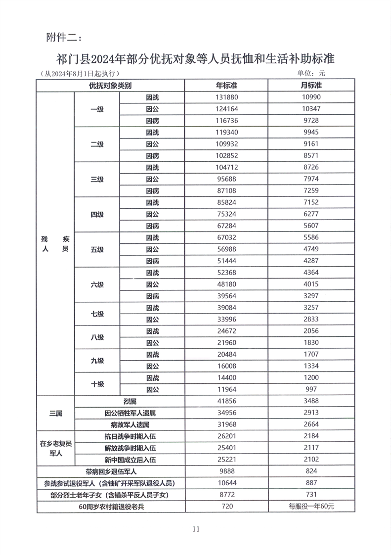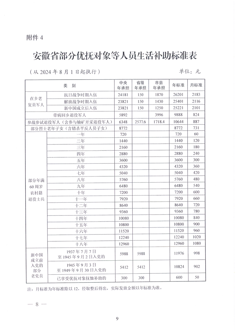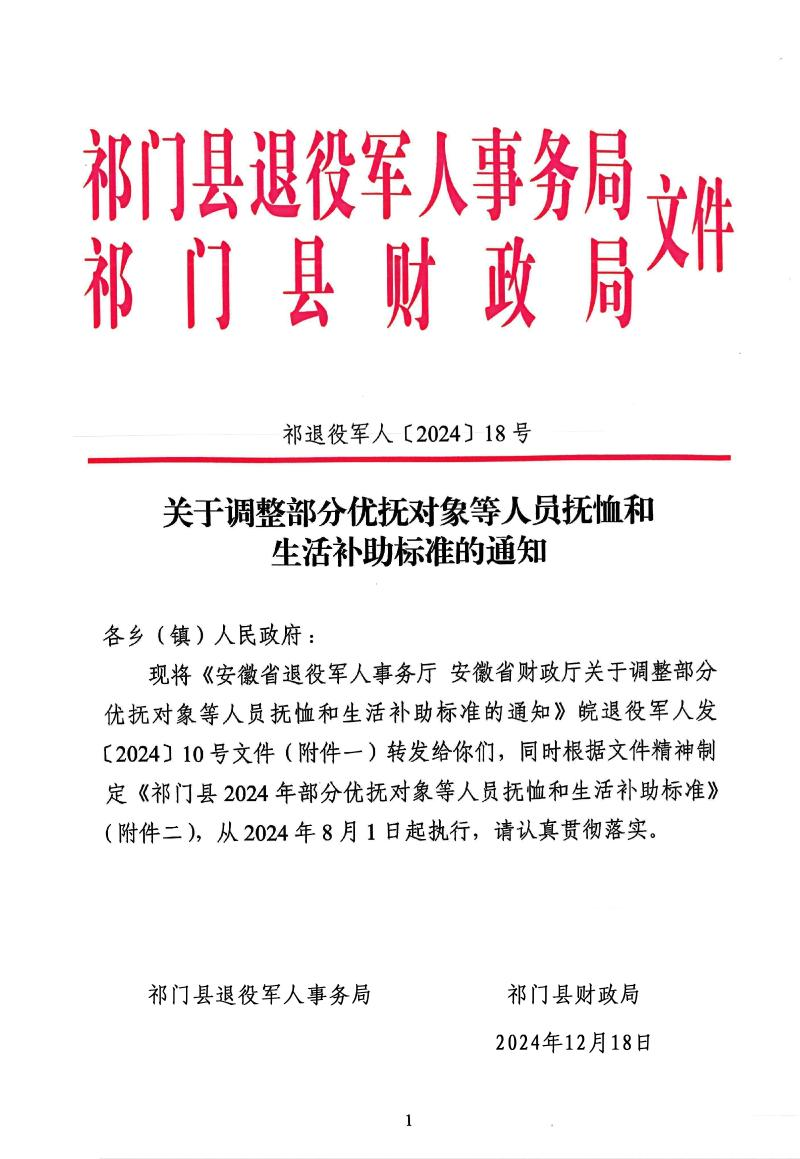 关于调整部分优抚对象等人员抚恤和生活补助标准的通知